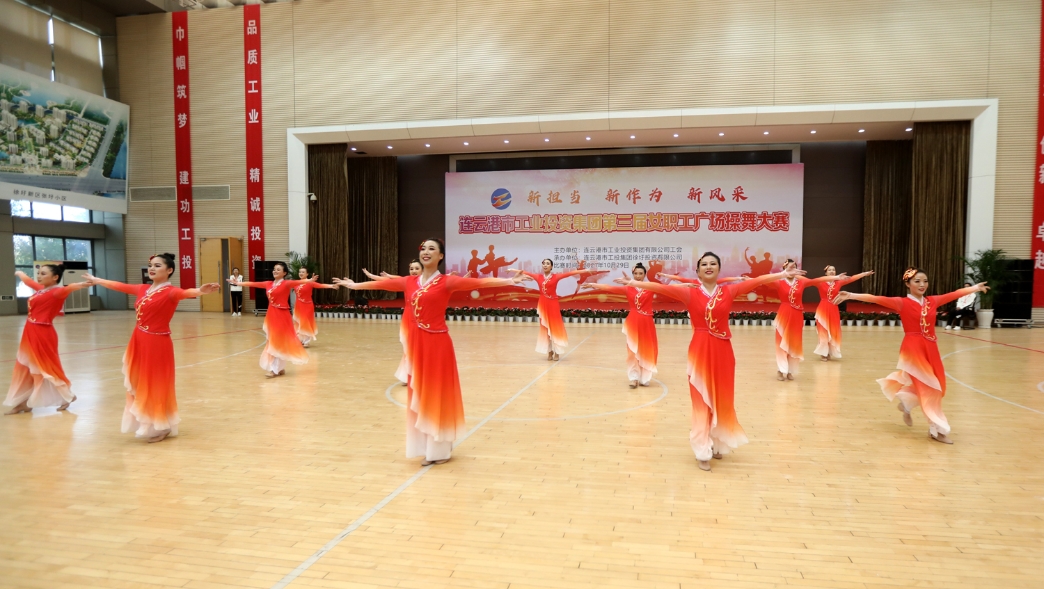 “新?lián)?dāng)、新作為、新風(fēng)采”,增進(jìn)職工友誼,凝聚團(tuán)隊(duì)力量。10月29日,由集團(tuán)工會(huì)主辦,徐圩投資公司承辦的集團(tuán)公司第三屆女職工廣場(chǎng)操舞大賽在徐圩新區(qū)體育館激情開賽,來自各單位的11支代表隊(duì)近150名女職工共同獻(xiàn)上一場(chǎng)精彩的文化盛宴。市婦聯(lián)副主席臧永明,集團(tuán)公司黨委副書記戴鴻鳴、紀(jì)委書記汪群、工會(huì)主席劉承志等領(lǐng)導(dǎo)參加活動(dòng)。