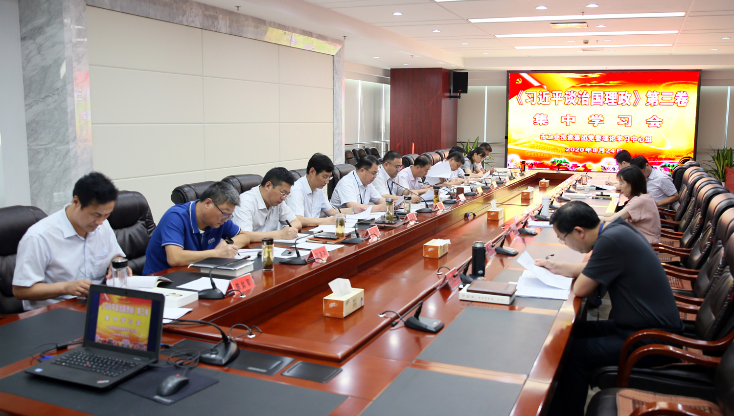 8月24日,集團公司黨委理論學(xué)習(xí)中心組召開集中學(xué)習(xí)會,專題學(xué)習(xí)《習(xí)近平談治國理政》第三卷。黨委書記、董事長楊龍主持學(xué)習(xí)會。