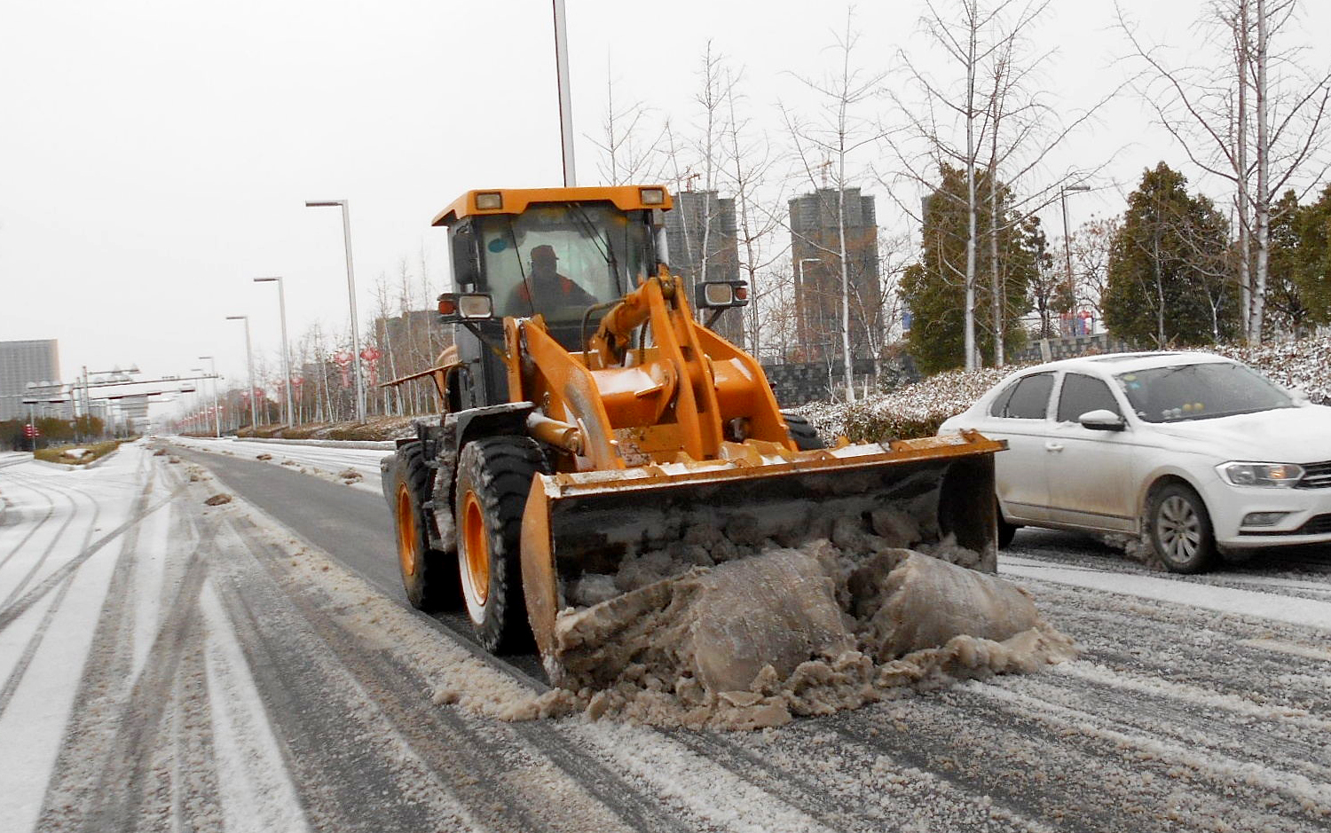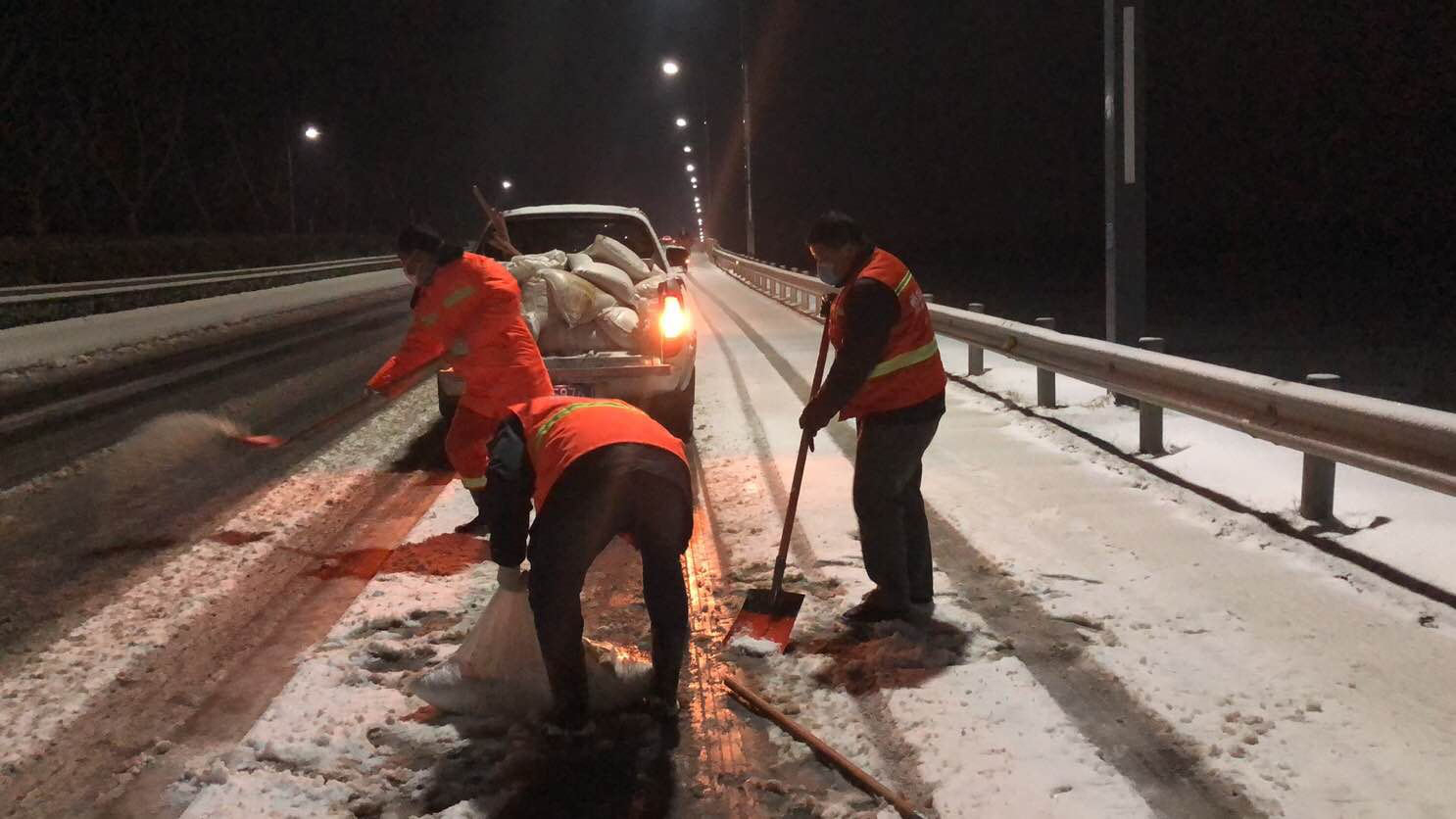 在開發(fā)區(qū)、徐圩新區(qū)、灌云臨港產(chǎn)業(yè)區(qū)的各個區(qū)域,到處都是集團(tuán)綠化保潔人的最美身影,他們在各單位黨員先鋒隊、青年突擊隊的配合下,帶上融雪劑和作業(yè)工具,發(fā)揚不怕艱苦、連續(xù)作戰(zhàn)、敢打敢拼的工投精神,對交通要道、橋梁、彎道等重點防滑路段進(jìn)行清雪防凍處理,鋪灑融雪劑40余噸,為疫情防控期間車輛行人出行安全增添一份保障。