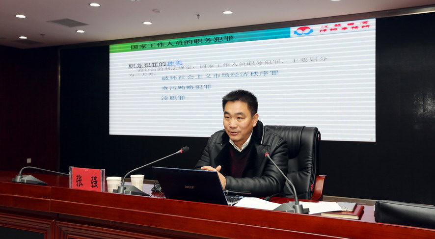 為進(jìn)一步幫助廣大干部職工筑牢思想道德防線,預(yù)防職務(wù)犯罪,12月28日上午,集團(tuán)公司舉行廉潔履職警示教育專題報(bào)告會(huì),邀請(qǐng)江蘇田灣律師事務(wù)所副主任張強(qiáng)作廉潔履職專題報(bào)告。集團(tuán)公司領(lǐng)導(dǎo)班子成員,各單位領(lǐng)導(dǎo)班子成員、三級(jí)法人單位黨政負(fù)責(zé)人、集團(tuán)總部全體管理人員參加報(bào)告會(huì)。