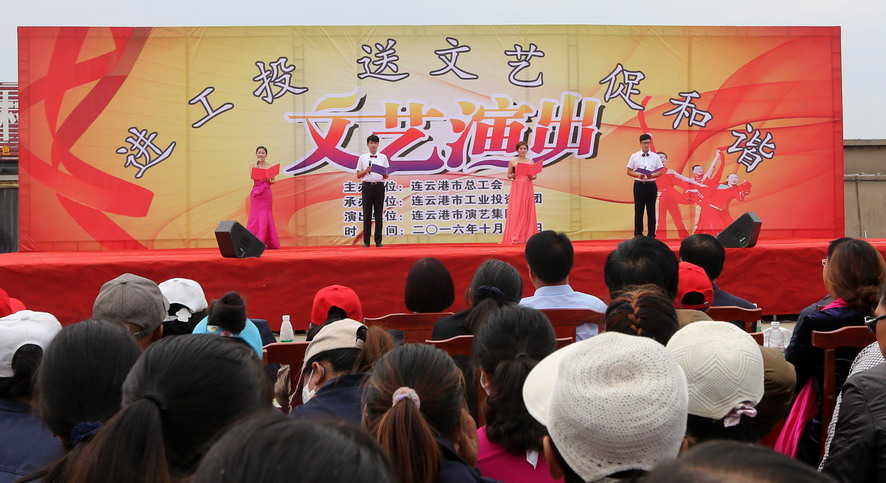 10月11日下午,由連云港市總工會主辦、集團(tuán)公司承辦、市演藝集團(tuán)演出的“進(jìn)工投、送文藝、促和諧”文藝演出在灌西投資公司精彩上演,市總工會副主席陳健、集團(tuán)公司工會主席戴鴻鳴等領(lǐng)導(dǎo),以及1000余名觀眾觀看了演出。