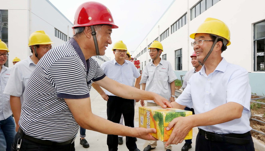連日來,驕陽似火,酷暑難當(dāng)。7月28日,集團(tuán)公司楊龍、胡建明、楊國(guó)新、戴鴻鳴、匡友本、陳如軍等領(lǐng)導(dǎo)分赴基層一線,進(jìn)車間、入工地、到灘(田)頭,慰問在高溫下堅(jiān)守崗位的一線員工,送去冰紅茶、綠豆等防暑降溫品,在炎炎夏日中將“清涼”送到職工心坎上。