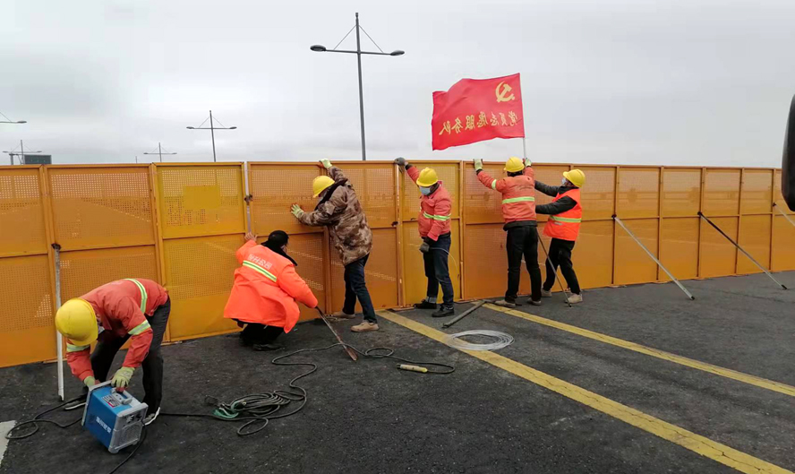 安裝加固步步到位?!敖裉焓姓趰?/span>9人。”17號(hào)一大早,市政經(jīng)理高峰就準(zhǔn)時(shí)在公司防疫管理群里報(bào)告人數(shù)??墒谴藭r(shí)這崗位卻設(shè)在狂風(fēng)凌洌、無遮無擋的海濱大道上。肆虐的狂風(fēng)吹倒了許多防護(hù)欄,從清晨開始,高峰就帶領(lǐng)市政突擊隊(duì)沿著合作路、海濱大道等八個(gè)路段一路巡查一路搶修。面對(duì)狼藉的現(xiàn)場(chǎng),高峰沉著冷靜,有條不紊地帶著大家用力地扶起扶正,再加樁固定。施工現(xiàn)場(chǎng),風(fēng)聲伴著加油的號(hào)聲、汗水伴著有節(jié)奏地敲擊聲,這場(chǎng)景,不正是一幅感人的“錚錚鐵骨鑄堅(jiān)壁”的動(dòng)人畫卷嗎?自3月5日疫情襲來,市政突擊隊(duì)就馬不停蹄地奮戰(zhàn)在新區(qū)的各個(gè)角落。施工期間,高峰他們白天黑夜地連軸轉(zhuǎn),中午來不及休息便蹲在路邊吃快餐,為了搶工期,有時(shí)竟加班到深夜12點(diǎn)。短短的10天,他們?cè)谧龊闷渌姓?wù)工作的同時(shí),已經(jīng)先后安裝完成了2000多米的道路圍擋,讓病疫“無路可逃”。