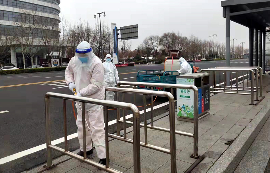 連續(xù)兩天狂風(fēng)大作,氣溫驟降,惡劣的天氣給徐圩悅升公司保潔、綠化養(yǎng)護(hù)及市政維護(hù)等工作帶來了極大的影響。面對(duì)困難,悅升公司強(qiáng)化部署、統(tǒng)籌調(diào)度,各條戰(zhàn)線上的“抗疫突擊隊(duì)”恪守職責(zé),以無畏、擔(dān)當(dāng)、奉獻(xiàn)的精神始終堅(jiān)守一線,出色地完成了各項(xiàng)常規(guī)及應(yīng)急保障工作。 清潔消殺環(huán)環(huán)相扣。3月16日上午11時(shí),悅升總部門前水霧彌漫,多臺(tái)作業(yè)歸來的車輛正有序地進(jìn)行著消殺清理。據(jù)公司徐總介紹,自疫情發(fā)生以來,公司積極配合新區(qū)疫情防控部署,全方位構(gòu)筑防疫聯(lián)控網(wǎng)絡(luò)。每天7點(diǎn)公司的消殺車就開始對(duì)徐圩新區(qū)、鄰里中心、居民小區(qū)等65萬平方米的轄區(qū)進(jìn)行大規(guī)模的消殺作業(yè)。公司在做好轄區(qū)正常的人工保潔工作同時(shí),每天出動(dòng)大型作業(yè)車輛4個(gè)臺(tái)班,清掃路面長(zhǎng)達(dá)6個(gè)小時(shí),垃圾清運(yùn)班每日清運(yùn)各類垃圾達(dá)10余噸。下午3點(diǎn)半,狂風(fēng)伴著寒流,市勞模龔飛正帶領(lǐng)班組成員對(duì)徐圩核心區(qū)域內(nèi)的公交站臺(tái)、果皮箱進(jìn)行全面清潔消殺,清掏、裝袋、搬運(yùn)、消毒,不斷重復(fù)的操作流程既繁瑣又勞累,寒風(fēng)中,他們的防護(hù)服早已濕透,但卻無人顧及。