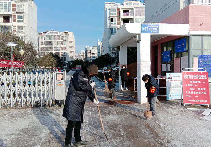 2月15日晚18:00時(shí),徐圩悅升公司班子成員及各分公司黨政負(fù)責(zé)人全員出動(dòng),帶領(lǐng)18名突擊隊(duì)員快速趕赴新區(qū)上海路、徐圩大道、徐新路、金港路等主要交通要道,連續(xù)奮戰(zhàn)4個(gè)多小時(shí),對(duì)橋梁、彎道等重點(diǎn)防滑路段進(jìn)行清雪防凍處理,共鋪灑融雪劑10余噸?!跋愫忧榫墶⑿腋<覉@”兩個(gè)職工小區(qū)防控疫情值守人員,不懼嚴(yán)寒,冒著大雪,在小區(qū)加強(qiáng)巡邏防控。該公司應(yīng)急大隊(duì)按照徐圩新區(qū)防疫指揮部要求,配合社區(qū)對(duì)珠江鋼管相關(guān)路道進(jìn)行封閉管控。