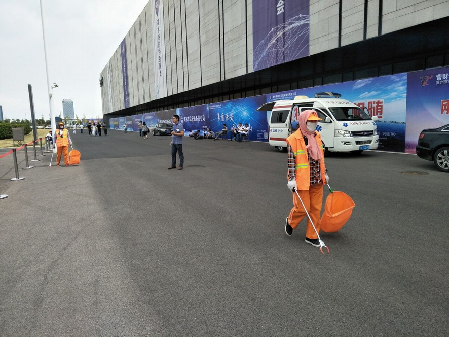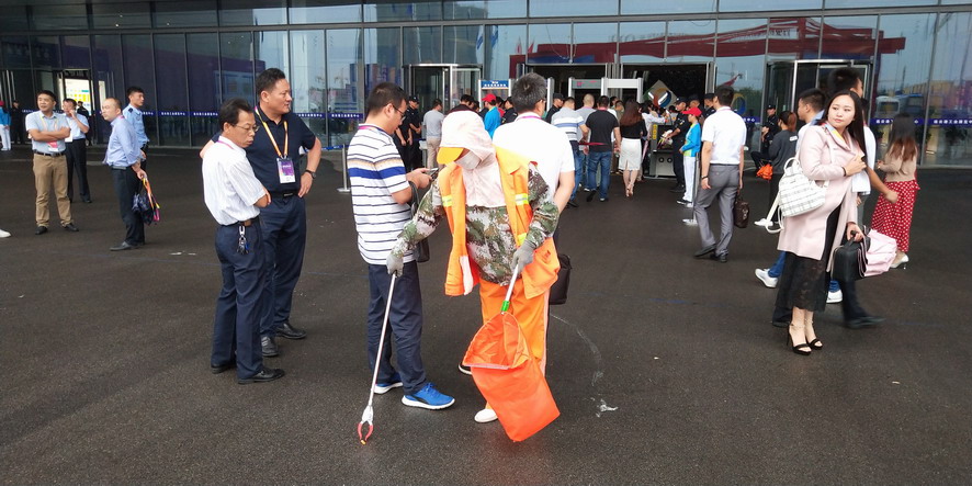 9月14日,連續(xù)忙碌了兩個禮拜的職工們還沒來得及休息,便又投入到“連博會”的準(zhǔn)備工作中去。由于本屆“連博會”共有來自27個國家和地區(qū)的420家企業(yè)參展,展覽總面積達(dá)3.7萬平方米,各家展商在布置展臺時,各類生活垃圾、裝修垃圾等一度將該公司布設(shè)的100多個垃圾桶都塞滿了,在安排好人工清理的同時,該公司還安排垃圾清運車對積存垃圾進(jìn)行清理清運,組織灑水車對會場及周邊道路進(jìn)行沖洗,一直到9月18日晚上9點左右才完成準(zhǔn)備工作。19日“連博會”開幕當(dāng)天,負(fù)責(zé)現(xiàn)場保潔工作的職工們早上6點多就趕到了會場,冒雨在會場周邊開始忙碌,一臺大型清掃車和一臺灑水車也在會場旁隨時待命。到了中午,當(dāng)展商們在室內(nèi)小憩的時候,室外的職工們?yōu)榱瞬坏⒄`事,站在風(fēng)口匆匆地扒拉兩口混雜著雨水的盒飯,就又投入到緊張的清理工作中去。僅19號開幕當(dāng)天,累計清理各類垃圾7噸左右,為“連博會”的正常召開提供了一個干凈、整潔的會場環(huán)境。