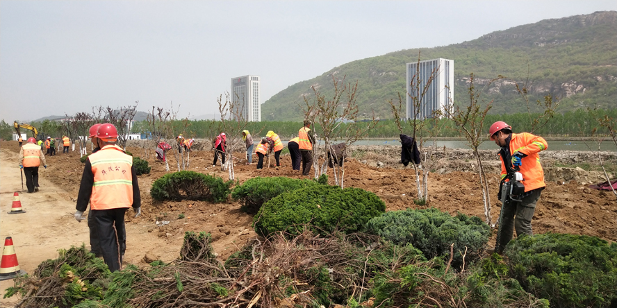 綠化工程施工緊鑼密鼓。公司承接的昌圩湖路移苗工程、242省道綠化恢復(fù)工程、江寧工業(yè)園242高速入口道路綠化補(bǔ)植工程、中科院環(huán)境提升改造工程等六項(xiàng)綠化工程,總價(jià)680多萬元,“五一”期間進(jìn)入施工關(guān)鍵期,裕升、裕欣、裕祥養(yǎng)護(hù)公司和益豐園林公司的技術(shù)骨干、綠化工人放棄假日休息,持續(xù)投入到緊張有序的施工之中,瑞泰服務(wù)公司、盛達(dá)市政公司水車、挖掘機(jī)、運(yùn)輸車等機(jī)械車輛緊密配合綠化工程施工,起苗、運(yùn)苗、上土、栽苗、搭架、澆水等環(huán)節(jié)緊扣,每一個(gè)作業(yè)現(xiàn)場都是一幅人頭攢動(dòng)、車來人往的忙碌勞動(dòng)畫面。