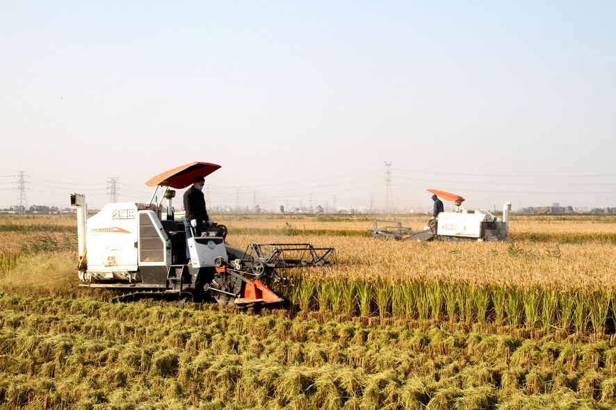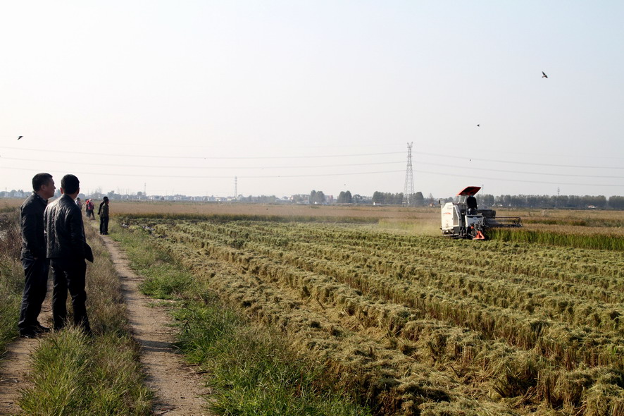 11月1日下午,連陰后地放睛氣溫明顯回升,鹽田稻花香,稻谷歸曬場,銷售訂單忙。在青口公司大新農(nóng)場的一分場趙斯凱的條田,兩臺收割機來回穿梭,一片繁忙的景象,全公司近二萬畝水稻開始收割。