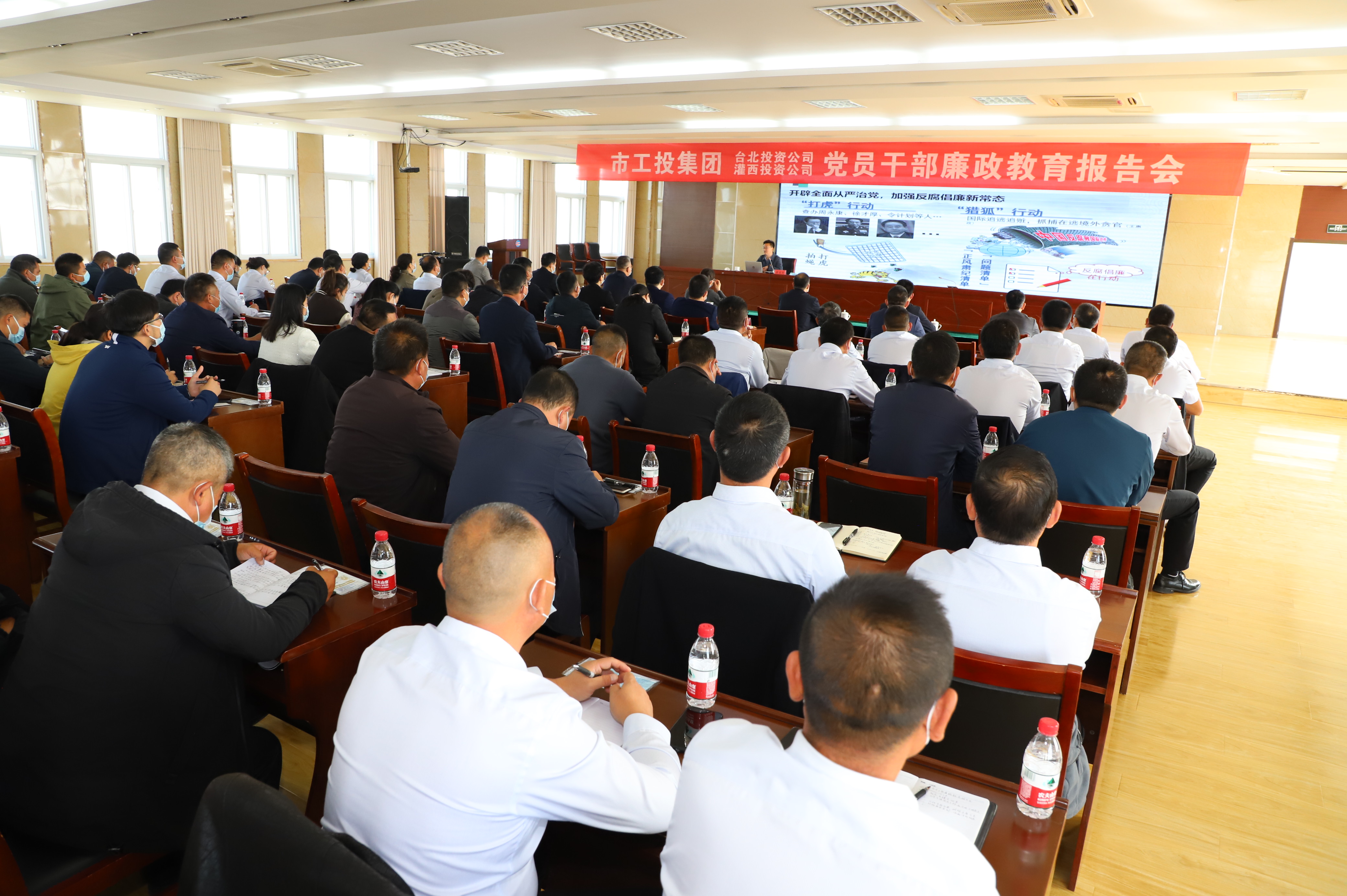為認(rèn)真貫徹落實黨的二十大精神,持續(xù)深化全面從嚴(yán)治黨,進(jìn)一步增強黨員干部廉潔自律意識,10月28日上午,灌西、臺北投資公司聯(lián)合舉辦廉政教育報告會。集團(tuán)紀(jì)委書記汪群、副書記王建松出席報告會。