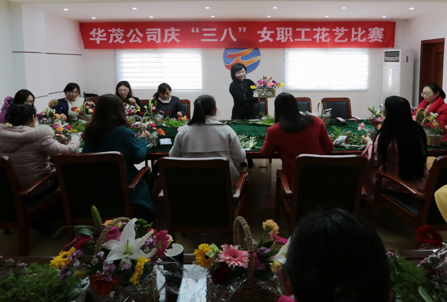 為慶?!叭恕眹?guó)際勞動(dòng)?jì)D女節(jié),營(yíng)造熱烈的節(jié)日氛圍,3月6日下午,華茂綠化工程公司工會(huì)開展了女職工“花藝比賽”活動(dòng)?;顒?dòng)特邀花藝?yán)蠋煬F(xiàn)場(chǎng)授課,為女職工們講述了插花的種類和插花的原則。在聽取老師花藝講座后,女職工們開始了插花比賽。經(jīng)過(guò)老師點(diǎn)評(píng),最終趙盼、趙宏媛、王芬分別獲得了本次比賽的前三名。