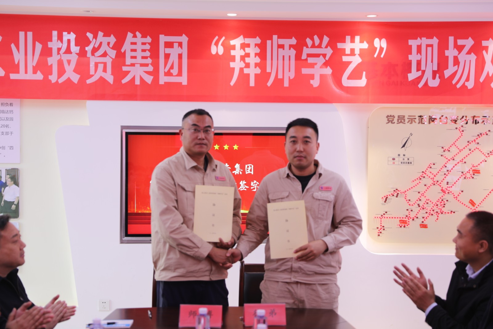 觀摩結(jié)束后,活動(dòng)進(jìn)入師徒代表交流環(huán)節(jié)。市勞模王建作為師傅代表率先發(fā)言,他結(jié)合自身帶徒經(jīng)歷,毫無保留地分享了培養(yǎng)新人的心得感悟。隨后,在全體與會(huì)人員的共同見證下,師徒雙方鄭重簽訂 "拜師學(xué)藝" 結(jié)對(duì)協(xié)議書,這一紙契約不僅是責(zé)任的傳遞,更是匠心的延續(xù)?;顒?dòng)現(xiàn)場還舉行了贈(zèng)書儀式,一本本凝聚著知識(shí)與經(jīng)驗(yàn)的書籍從師傅手中傳遞到徒弟手中,猶如一盞盞明燈,照亮了徒弟們的成長之路。