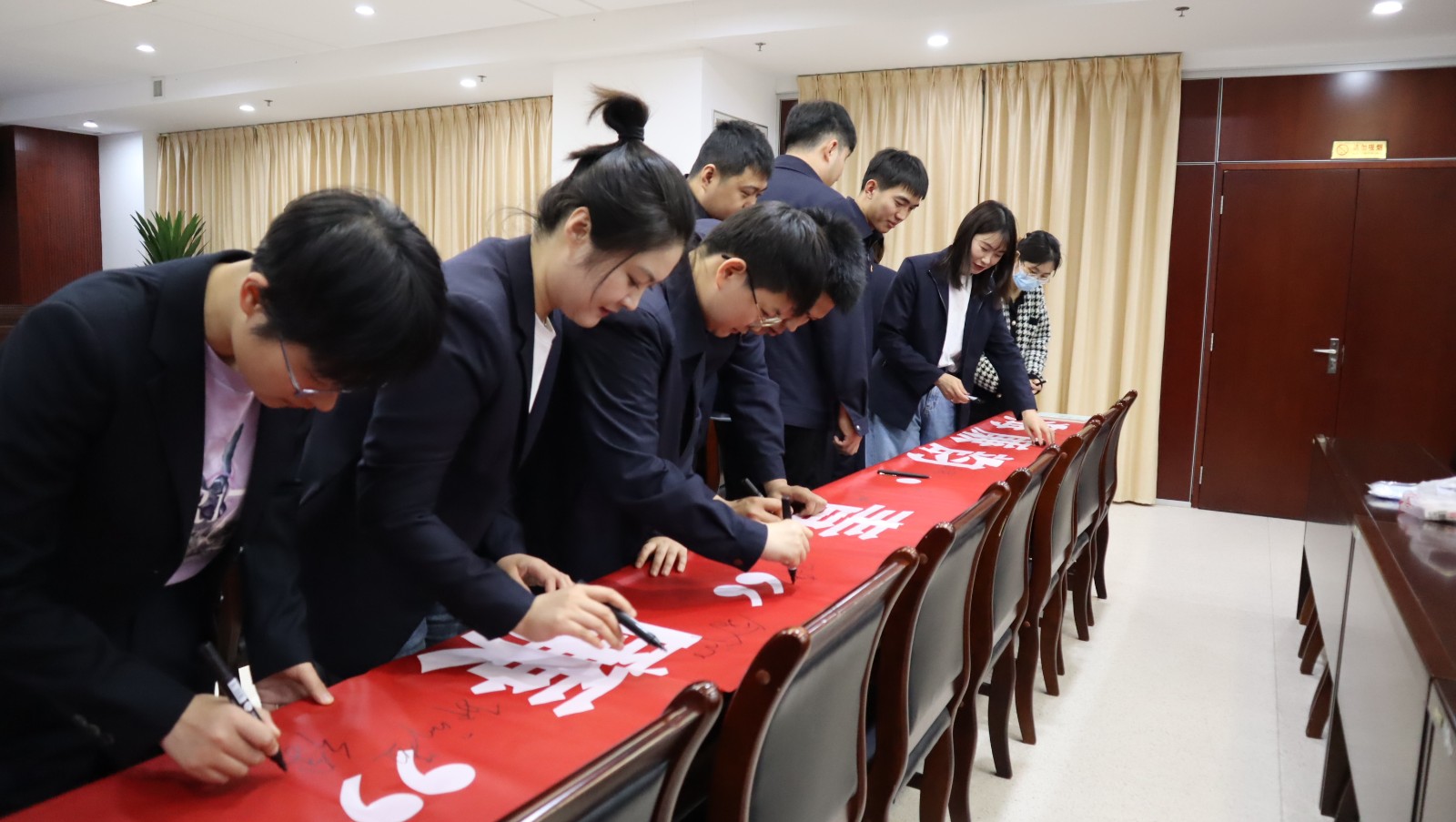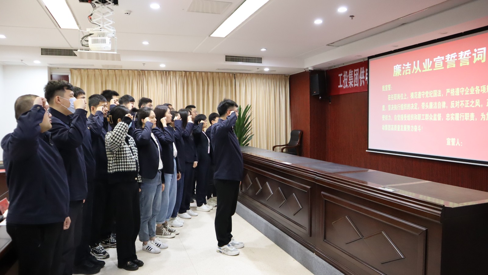 會上,九零后年輕管理人員參加廉潔從業(yè)宣誓并簽訂個人廉潔承諾書。(王雨)
