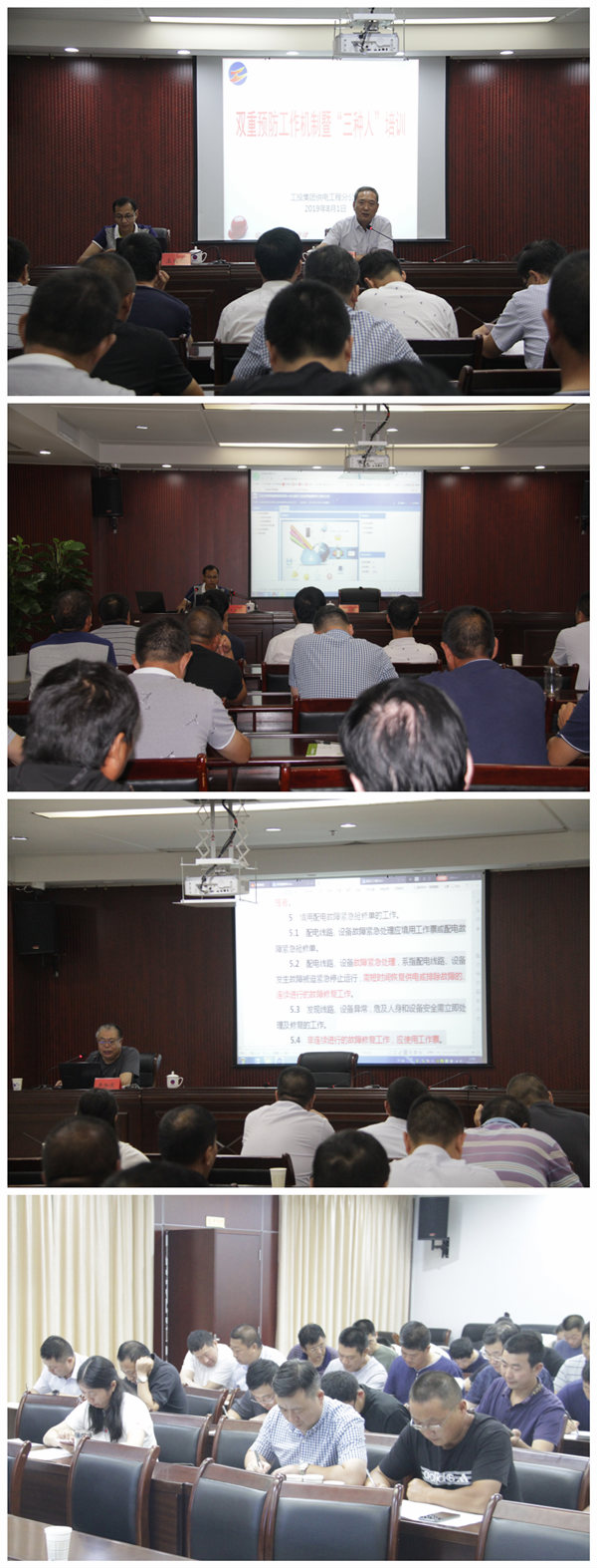 本次培訓(xùn)主要分為兩部分:第一部分是在上午邀請九九六注冊安全工程師事務(wù)所譚磊、無錫五邦安全軟件王成陽進行雙重預(yù)防機制培訓(xùn);第二部分為下午邀請連云港供電公司安質(zhì)部李加慶進行“三種人”專項培訓(xùn),并進行了考試,40余名參加培訓(xùn)的人員全部通過考核。