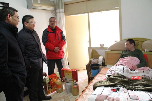 2月2日,在公司黨委書記、經(jīng)理孫政權(quán)陪同下,集團(tuán)公司領(lǐng)導(dǎo)匡友本一行走訪慰問了巨龍農(nóng)貿(mào)市場困難職工徐杰、劉元國等家庭,并送去了慰問品和慰問金。匡總詳細(xì)詢問了受訪職工身體健康狀況、家庭生活情況,鼓勵他們堅(jiān)定信心,戰(zhàn)勝困難和疾病。公司工會主席王志軍一同參加。﹙徐靜﹚