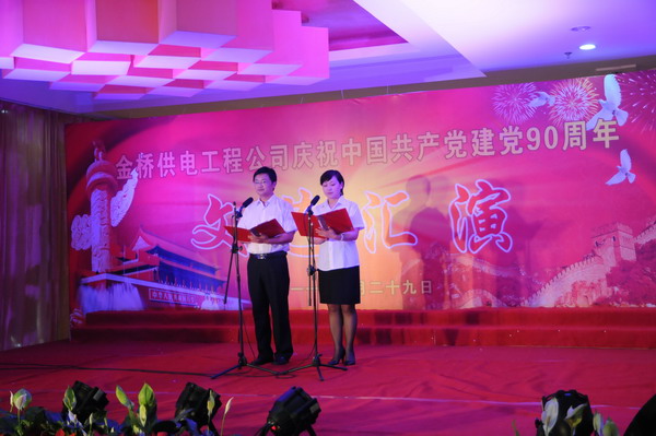 6月29日,公司為慶祝建黨90周年,隆重舉行文藝匯演。集團公司黨委副書記、紀委書記鄭宜虎,工會主席戴鴻鳴,有關(guān)部門負責人,以及部分離退休老干部應(yīng)邀出席。 演出節(jié)目既有詩朗誦《七月,為黨歌唱》、大合唱《共架金橋》、女聲獨唱《走進新時代》等,又有公司自創(chuàng)、自編、自導的搖滾快板《金橋供電在崛起》、相聲《誰聰明》、舞蹈《螃蟹調(diào)》等。整個演出大氣磅礴,精彩紛呈,掌聲不斷。(司宣)