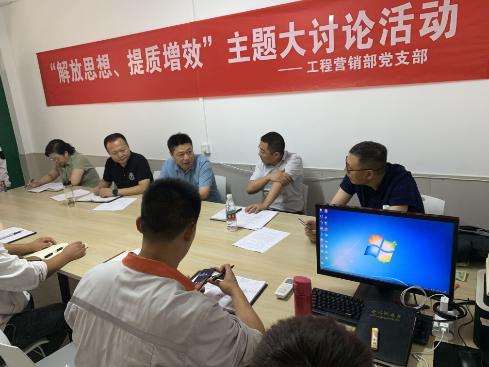 8月11日上午,工程營(yíng)銷(xiāo)部開(kāi)展“解放思想、提質(zhì)增效”主題大討論活動(dòng),公司黨委書(shū)記、總經(jīng)理宋晟曄,總經(jīng)理助理徐健,生產(chǎn)技術(shù)部部長(zhǎng)張雷海參加討論。會(huì)議由工程營(yíng)銷(xiāo)部副部長(zhǎng)賀通華主持。
