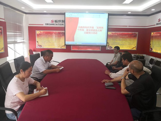 8月21日,臺南供電所黨支部開展“發(fā)揮兩個作用,建設(shè)美麗連云港”主題黨日活動。活動中,黨員共同學(xué)習(xí)了市委十二屆十次全會及《“數(shù)”讀中共江蘇省委十三屆八次全會重點(diǎn)》會議精神;全體黨員交流了“我為美麗連云港建設(shè)做什么”的想法和做法。預(yù)備黨員楊同善表示,堅(jiān)決執(zhí)行領(lǐng)導(dǎo)布置的各項(xiàng)任務(wù),特別是近期尚風(fēng)沂北風(fēng)電場集電線路的建設(shè),要充分發(fā)揮自己團(tuán)隊(duì)協(xié)作的能力,吃苦耐勞的精神,聽從安排,服從指揮,為加快工程建設(shè)進(jìn)度,確保工程建設(shè)質(zhì)量保駕護(hù)航。作為一名共產(chǎn)黨員要充分發(fā)揮先鋒模范帶頭作用,結(jié)合工作實(shí)際,立足工作崗位,爭當(dāng)先鋒先進(jìn),創(chuàng)新實(shí)干,攻堅(jiān)克難,用實(shí)實(shí)在在行動踐行初心使命,為美麗連云港建設(shè)矢志奮斗、拼搏實(shí)干。(劉繼美)