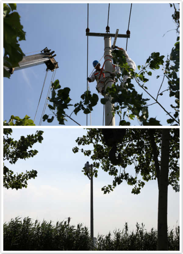 今夏已入伏!但是在金橋路與云馳路315變壓器安裝現(xiàn)場,臺北供電所一線員工們熬著近四十度高溫,奔波在炙熱的馬路上,登上燙手的電桿…他們忘我的工作就是為了讓用戶們用上及時電、安全電、放心電。讓我們?yōu)樗麄兊男燎诟冻鳇c贊?。ㄥX明華)