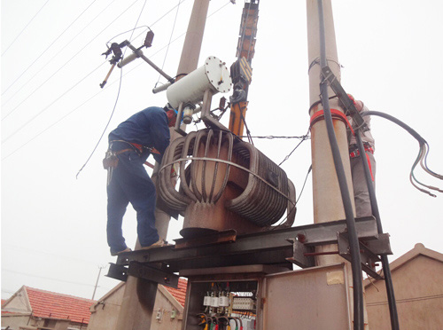 連日來,天氣持續(xù)高溫,用電負(fù)荷也隨之加大,轄區(qū)原有設(shè)計的供電線路及變壓器容量已不能滿足居民生活用電的需求,供用電矛盾日益突出。特別是4號變壓器供電區(qū)域大、容量小,已嚴(yán)重危急到供電質(zhì)量和供電安全運行。為此,所領(lǐng)導(dǎo)決定將原有的160KVA變壓器更換為250KVA變壓器。為了避開高溫時斷,大家起早作業(yè),但還是忙的汗流浹背。他們顧不上休息,加快設(shè)備更換速度,終于在上午八點前完成更換任務(wù),恢復(fù)供電。(王志勇)