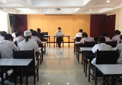在培訓中,陳總監(jiān)結(jié)合諸多事故案例,強調(diào)了預防食物中毒的重要性,讓參加培訓的員工了解什么是食物中毒、容易引起食物中毒的食材主要有哪些、怎樣識別和防止食材霉腐變質(zhì)。餐飲部經(jīng)理郭天麗重點講解了食物中毒的幾種特征及一般急救方法。