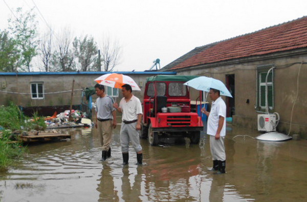 7月9日上午一上班,宋跳農(nóng)場場長趙懷忠?guī)ьI任志明、駱功勛、孫習年、于懷前等同志檢查場區(qū)和居民區(qū)。在整個暴雨過程中,居民區(qū)房屋沒有發(fā)生險情,但地面積水較多,對個別居民用電不符合規(guī)范的,要求立即整改。清源水泥制品廠的石棉瓦大棚局部有坍塌危險,該場當時就下發(fā)整改通知單,限期7月20日前完成。農(nóng)戶棉花地局部受淹,農(nóng)田積水于當天下午基本排掉。場區(qū)基本沒有積水,但辦公室在暴雨過程中有漫水現(xiàn)象。職工上班后,清掃辦公室衛(wèi)生,陸續(xù)恢復正常辦公。(任志明)