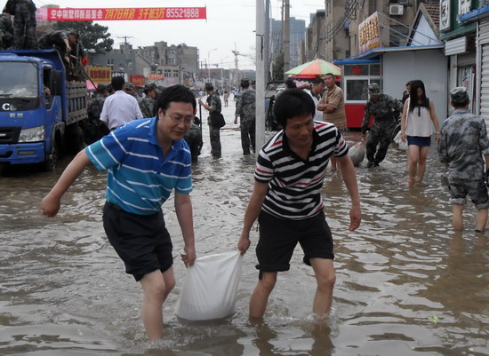 近日,面對百年一遇的特大暴雨,巨龍市場職工吃住在市場,全力進(jìn)行防汛排澇。