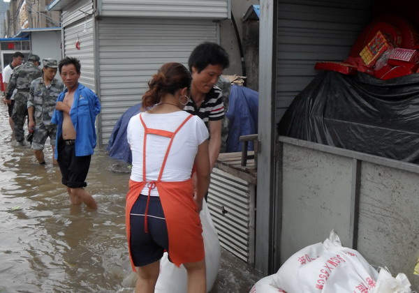 7月8日凌晨3點(diǎn)起,降雨強(qiáng)度大 、雨量大,巨龍農(nóng)貿(mào)市場積水深度30公分,最深處達(dá)60公分,兩個配電房、經(jīng)營出租房、職工宿舍等全部被淹。該單位立即啟動抗洪應(yīng)急預(yù)案,全體職工幾天來吃住在抗洪工作一線,幫助經(jīng)營戶轉(zhuǎn)移糧食,轉(zhuǎn)移被淹戶3家,建防洪堤6個; 對兩個配電房進(jìn)行晝夜值班、排水。