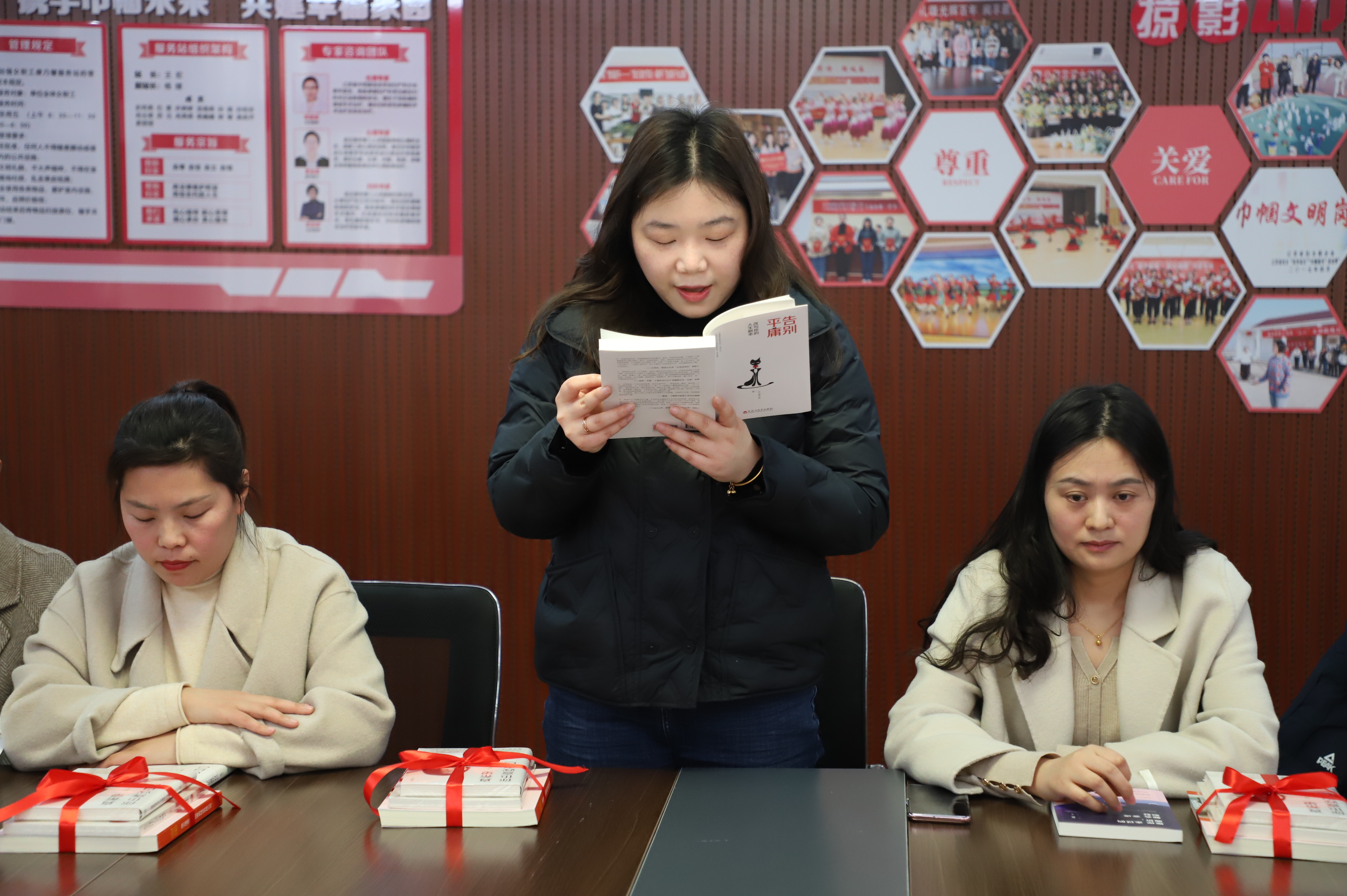 來吧,來吧,相約三八。相約在春光明媚的三月里,相約在閱讀分享的文韻里,相約在康乃馨服務站里......。3月7日下午14:00,公司工會開展的“巾幗心向黨”主題讀書分享會在女職工朗朗的誦讀中拉開帷幕。來自公司各條戰(zhàn)線上的女職工們從教育、文學、哲學、健康等方面內(nèi)容,進一步抒發(fā)家國情懷,弘揚時代精神,給我們帶來了一場聽覺盛宴。塑造知識型的“她”,并為女職工贈送有關紅色主題、女性勵志等方面的書籍,在廣大婦女中營造“好讀書、讀好書、讀書好”的良好氛圍,促進家庭文明、社會和諧。