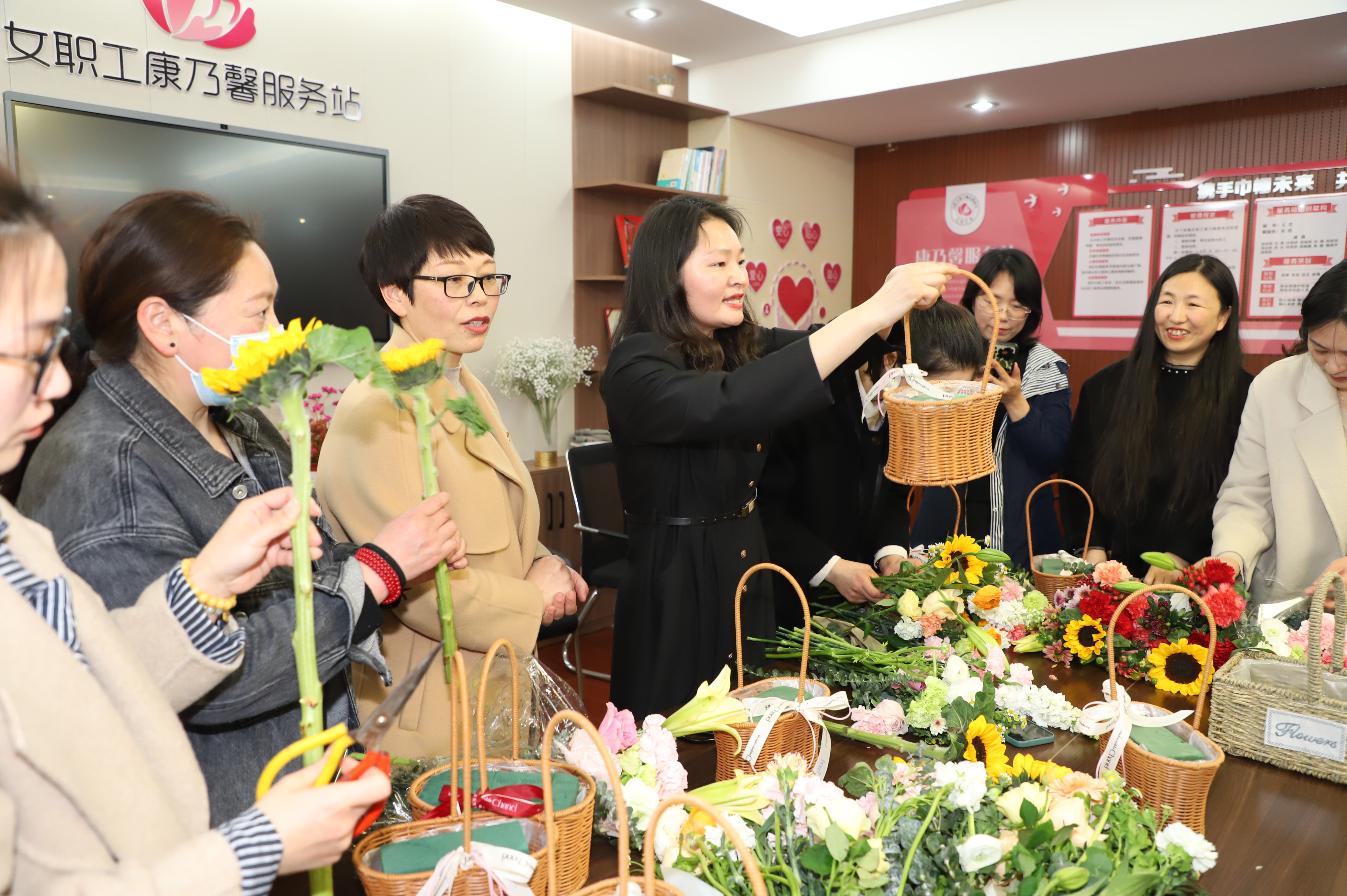 隨后開展的藝術插花活動,更是將節(jié)日慶祝氣氛推向了高潮?;顒?/span>現(xiàn)場,邀請專業(yè)插花老師進行現(xiàn)場指導,插花老師用通俗易懂的語言講授插花基本技巧,從顏色的搭配、花枝長短的修剪以及造型等方面進行細致講解,大家也紛紛行動起來,構(gòu)思設計,在老師的指導下將各種花材修剪和整枝,忙的不亦樂乎。一盆盆姿態(tài)各異的花在女神們靈巧的雙手下陸續(xù)誕生,形成了一幅幅獨具匠心又飽含深意的插花作品。感受節(jié)日美的“她”,看著自己親手創(chuàng)作的插花作品,參與活動的30多名女職工感到滿滿的成就感和幸福感,現(xiàn)場一片其樂融融。