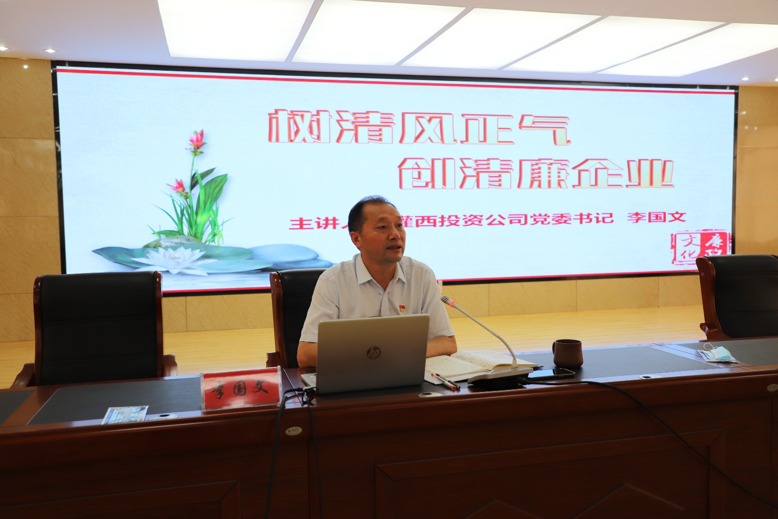 會(huì)議最后,李國(guó)文以“樹清風(fēng)正氣 創(chuàng)清廉企業(yè)”為主題,結(jié)合公司工作實(shí)際,為大家上了一堂生動(dòng)的廉政黨課。以正反面典型故事案例,教育警醒黨員干部自覺帶頭對(duì)照這“兩面鏡子”,要求全體黨員要以案為鑒,打牢思想根基,杜絕私欲膨脹,保持警鐘長(zhǎng)鳴;要堅(jiān)守“四心”,不忘初心,珍惜自身前程;守住清心,不攀比;修好內(nèi)心,自覺加強(qiáng)黨性鍛煉和黨性修養(yǎng);常懷律己之心,常修為官之德。警告大家,不觸底線、不越紅線。守住政治底線、夯實(shí)合規(guī)底線、筑牢廉政防線助推企業(yè)高質(zhì)量發(fā)展的重要性。(西宣)