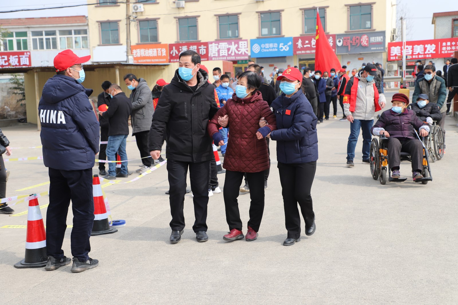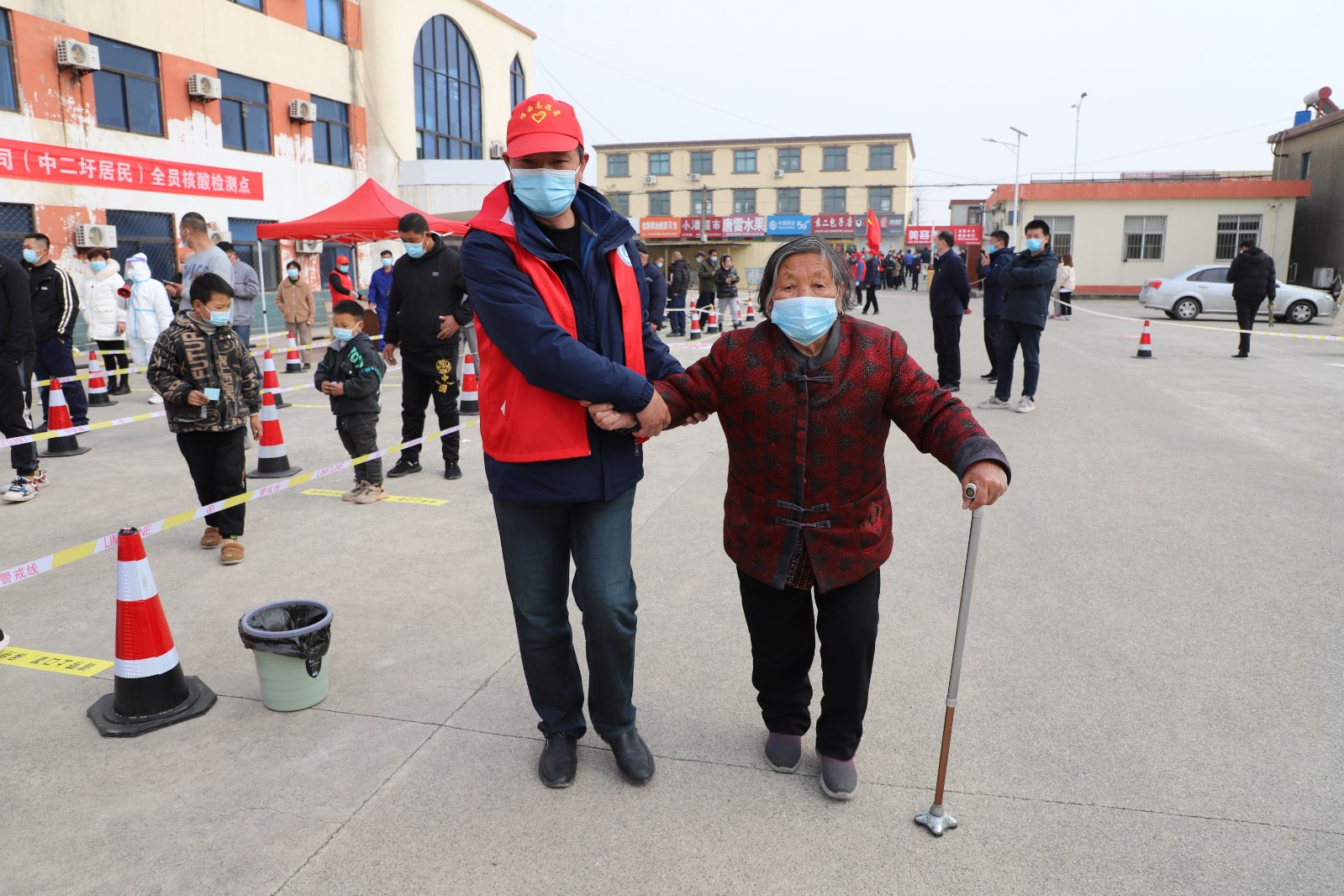 檢測當(dāng)天,上午7點半核酸檢測點準(zhǔn)備就緒,核酸檢測正式開始。檢測點用警戒線拉起通道,居民均按規(guī)定佩戴口罩有序排隊。排隊候檢的居民先登記身份信息及聯(lián)系方式,再由引導(dǎo)員帶隊到指定點位接受醫(yī)護(hù)人員的采樣,年紀(jì)大且腿腳不便的老人由現(xiàn)在志愿者攙扶,優(yōu)先進(jìn)行核酸檢測。采樣完畢后,大家按照標(biāo)識盡快從出口處離開檢測點,減少人員聚集。王靜、許冬彥等志愿者不時地提醒大家注意安全、保持一定安全距離,并維持秩序。整個過程緊張有序,核酸檢測工作于下午五點左右順利完成。