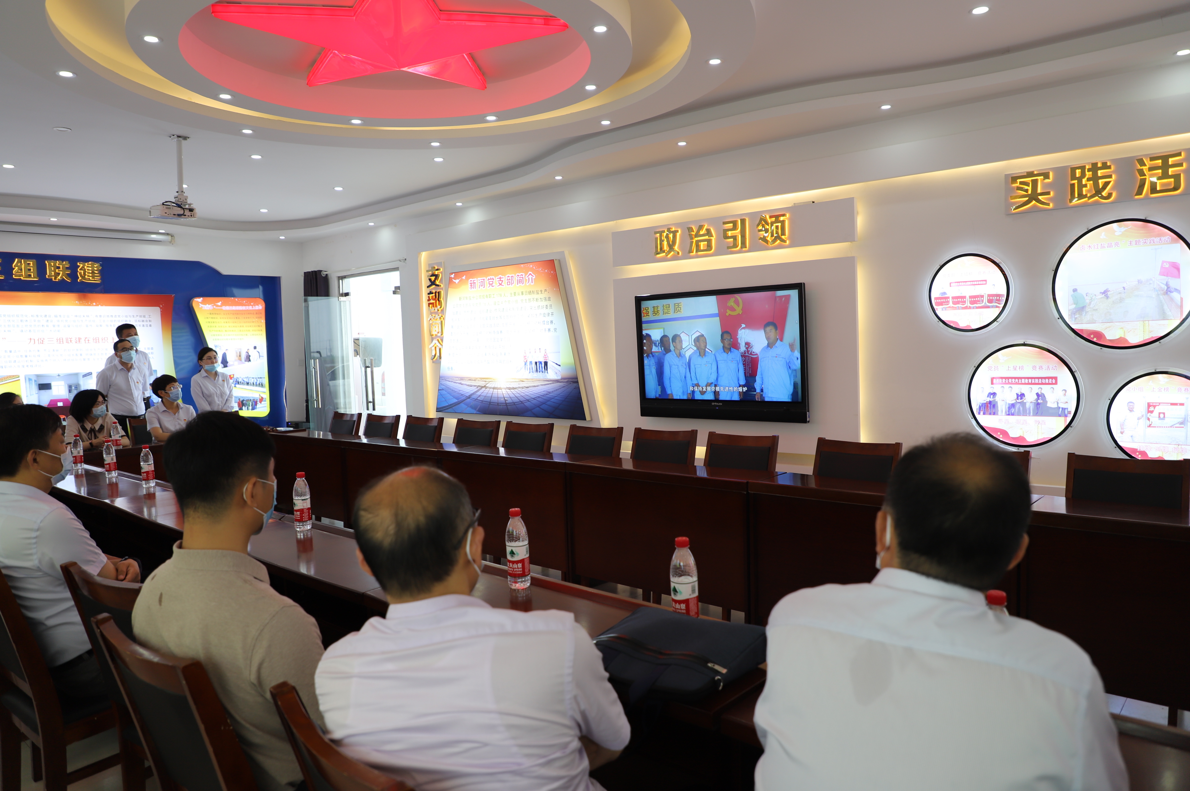 城建控股集團產改調研組一行分別到日曬制鹽公司新河分公司黨建活動室、八班班組活動室以及灌西投資公司的廉政文化展廳、職工書屋等處參觀學習,觀看了黨建帶工建專題片《“四+模式”助推勞模創(chuàng)新工作黨支部“雙創(chuàng)雙提升”》和《安樹林勞模創(chuàng)新工作室科技創(chuàng)新成果》視頻介紹,在隨后召開的交流會上,劉承志、李國文分別就工投集團和灌西投資公司的產改工作進行了交流。