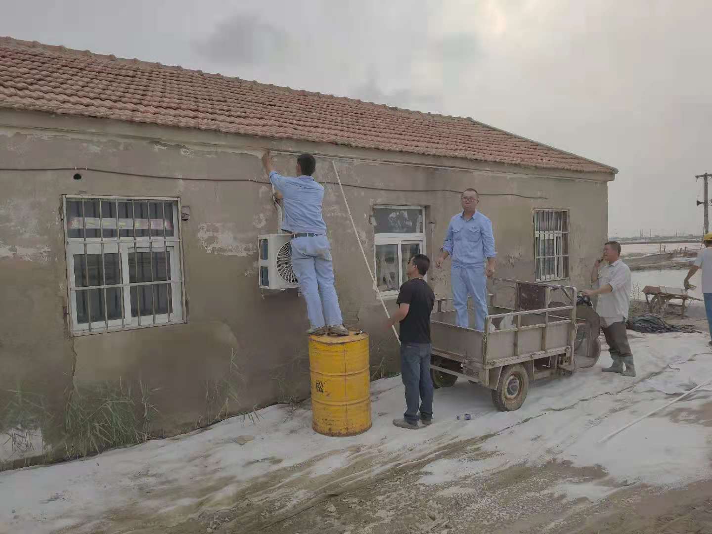 高溫酷暑、炎炎烈日下,在日曬制鹽的灘頭到處都是大汗淋漓、被曬得黝黑的鹽工們,因?yàn)樗麄兊膱?jiān)守和辛勤付出,才有了公司屢創(chuàng)佳績(jī)的今天?!爸蛋嗍姨珶崃?,夜間值班無(wú)法休息?!丙}工有訴求,組織有回應(yīng),公司為此按程序集中采購(gòu)了一批空調(diào)。為能更快更好將空調(diào)安裝至各班組值班室,維護(hù)工們不辭辛勞與安裝人員一起加班加點(diǎn),現(xiàn)已全部安裝到位。