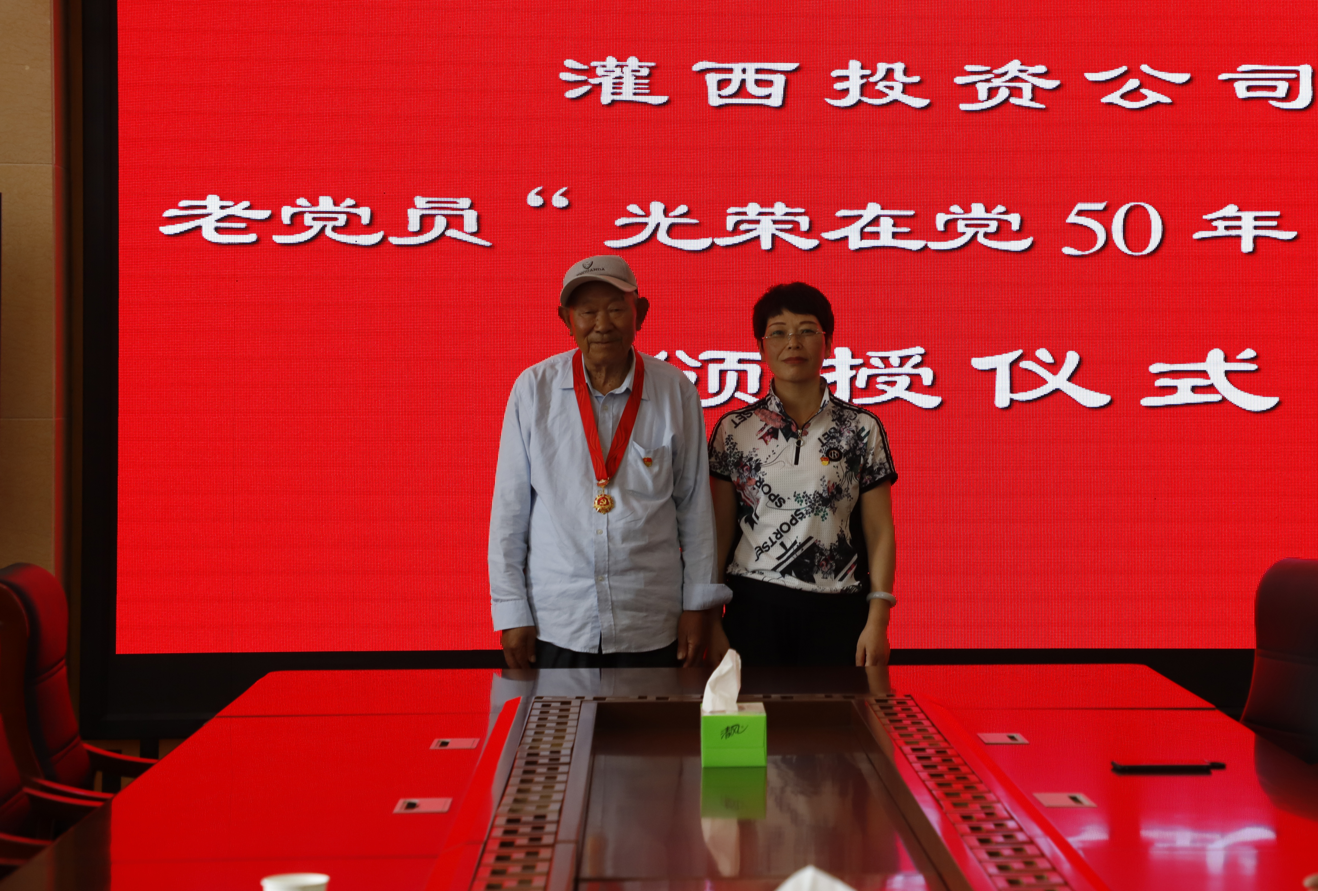 “五十年黨齡,五十載光榮”。6月29日下午,灌西“光榮在黨50年”紀(jì)念勛章頒授儀式在機(jī)關(guān)三樓舉行,投資公司黨委副書記、工會(huì)主席王宏向黨齡達(dá)到50年的兩位老黨員代表頒發(fā)紀(jì)念章,工會(huì)、黨群、紀(jì)委人員參加頒發(fā)儀式。