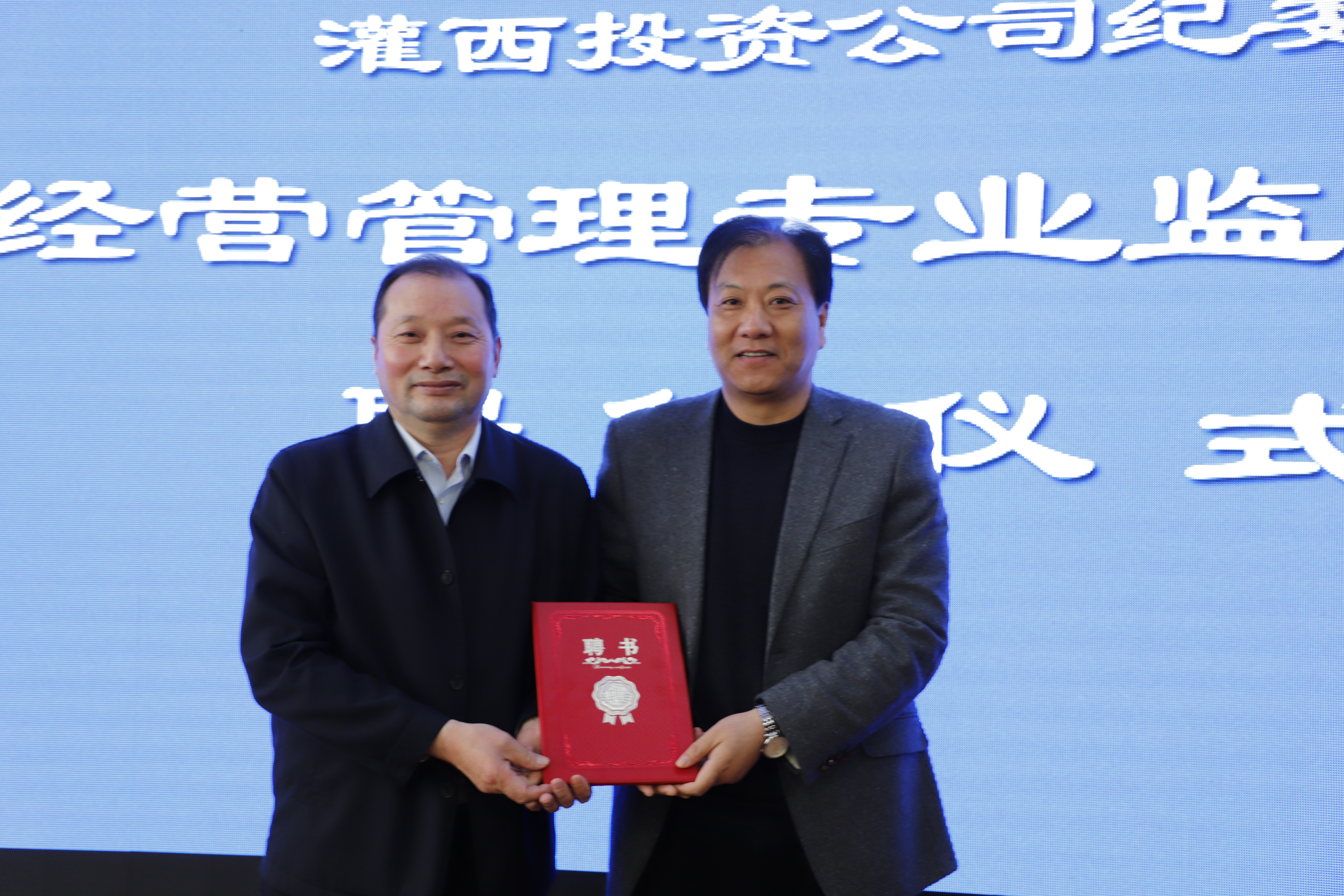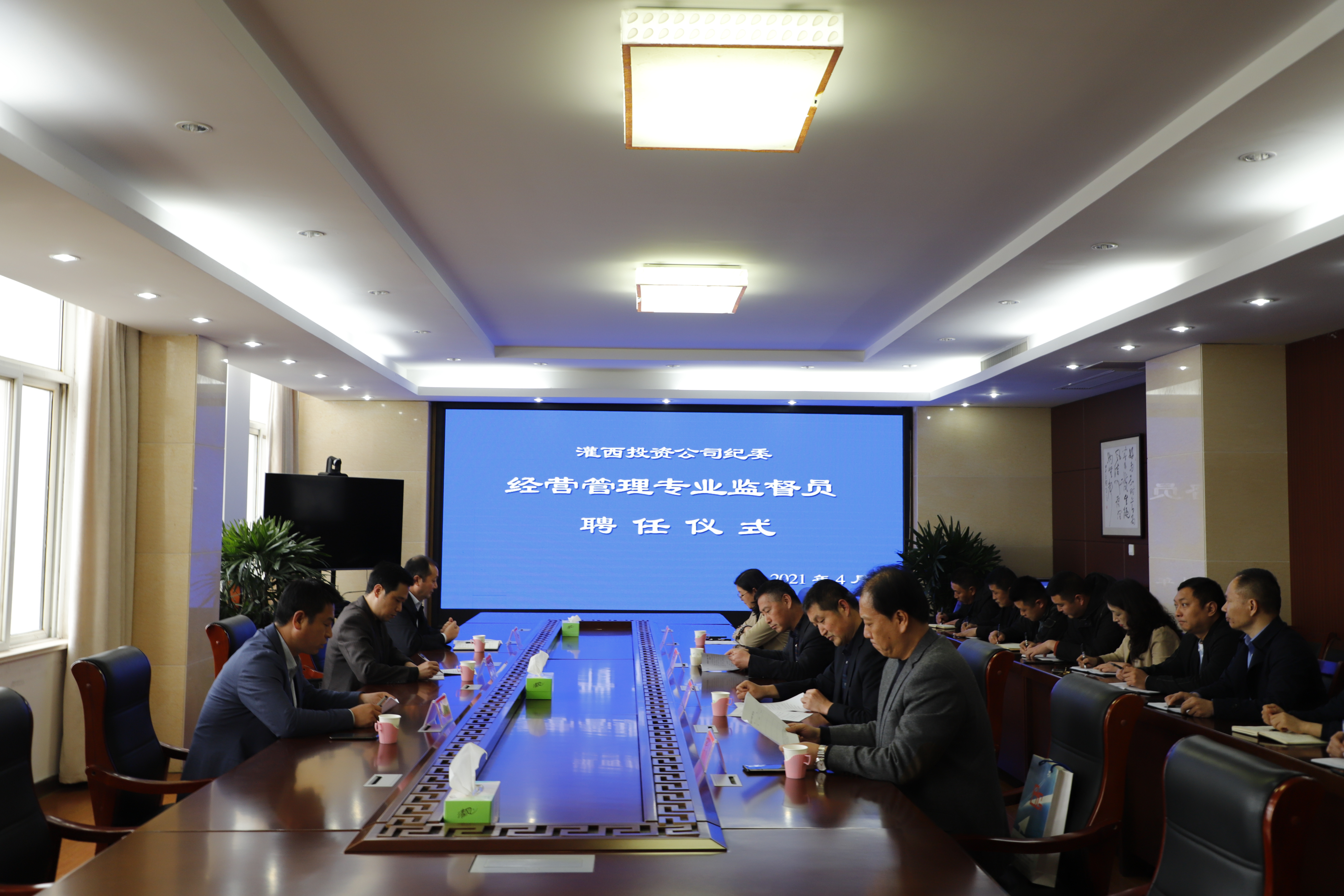 4月25日下午,灌西投資公司紀(jì)委舉行經(jīng)營管理專業(yè)監(jiān)督員聘任儀式,集團(tuán)公司紀(jì)委副書記王建松,投資公司黨委書記、董事長、總經(jīng)理李國文,紀(jì)委書記朱文海,各單位專兼職紀(jì)檢員、對口部門負(fù)責(zé)人參加聘任儀式。