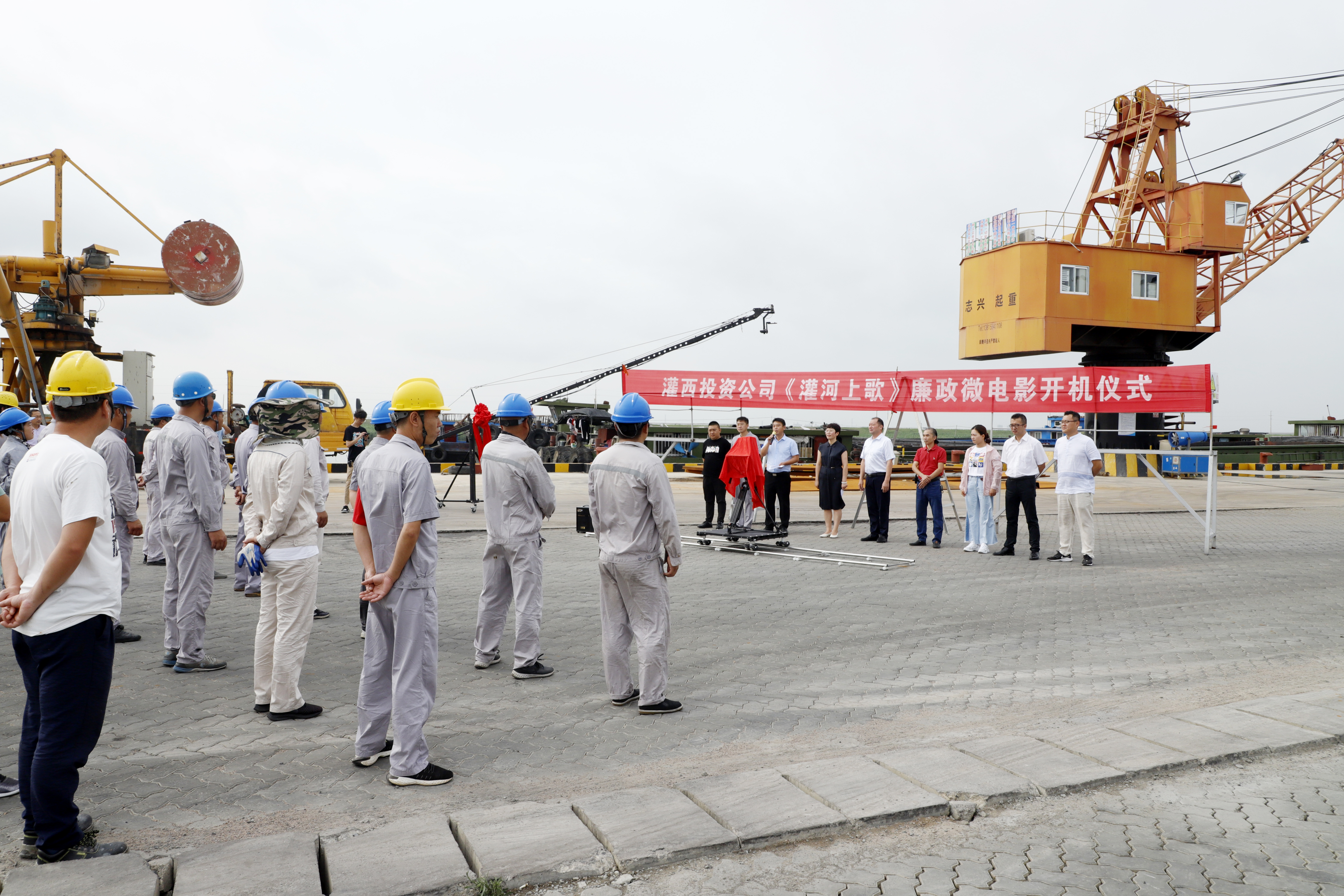 8月4日上午,由灌西投資公司黨委、紀(jì)委投資攝制的廉政微電影--《灌河上歌》開機(jī)儀式在宵洋五灌河碼頭舉行。投資公司黨委書記、董事長、總經(jīng)理李國文出席儀式并宣布微電影開機(jī)。
