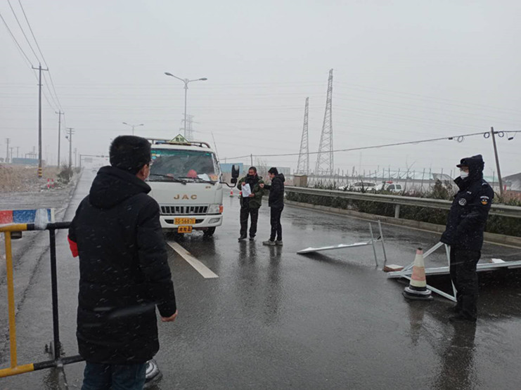 在324省道灌西入口和場內(nèi)各道路口,綜合治理辦公室和新河、埒南制鹽公司疫情防控一線的“戰(zhàn)士們”迎著風(fēng)雪和嚴(yán)寒的猛烈沖擊,堅守崗位,認(rèn)真履職,他們在卡口值守,嚴(yán)格按照要求對出入車輛、人員進(jìn)行檢查,認(rèn)真做好相關(guān)登記,以實際行動踐行著諾言,他們守住了防疫一線的門,扎牢了抗擊疫情的網(wǎng),他們是風(fēng)雪中最美的身影!鮮紅的黨旗下,黨徽熠熠生輝,要問今天最美的風(fēng)景是什么,值守卡口的黨員干部用行動告訴你,是風(fēng)雪中對灌西這片凈土最堅定的守護(hù)!