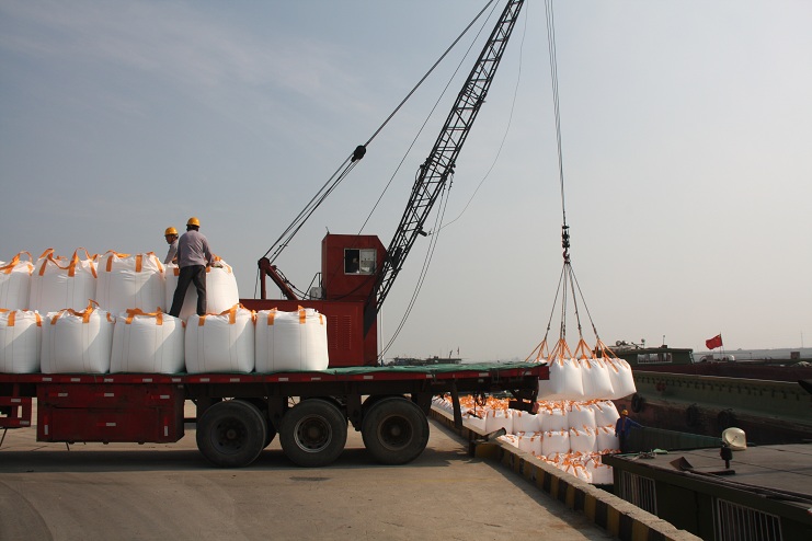國慶長假期間,除了10月1日天氣因素影響外,宵洋公司職工們和往常一樣,輪班堅(jiān)守在五灌河碼頭,隨時做好40萬噸噸袋物資的裝卸工作,決不耽誤客戶的正常生產(chǎn)和產(chǎn)品運(yùn)輸業(yè)務(wù),他們用無私奉獻(xiàn)、敬業(yè)愛崗和加班加點(diǎn)的實(shí)際行動,在工地上慶祝祖國的66歲華誕。從早上上班開始,他們便一直忙個不停,汗流下了就用毛巾擦一把,累了就輪流短暫歇一會,餓了就在工地的簡易食堂吃個便飯,經(jīng)常一干就是從早上到天黑,當(dāng)天的任務(wù)不完成沒有一個人提出下班回家。據(jù)值班的黨支部副書記劉樹龍介紹,國慶期間碼頭平均每天裝卸噸袋物資接近2000噸,裝卸總量大約1萬噸。