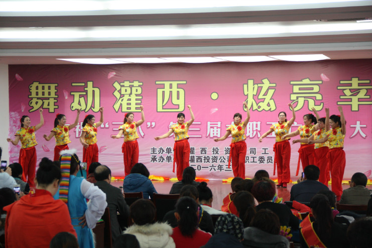 為了迎接第106個國際“三八”婦女節(jié)的到來,3月8日上午,灌西投資公司舉辦了“舞動灌西·炫亮幸福”第三屆女職工廣場舞大賽。這次比賽邀請了尚慶葉等七名集團(tuán)公司各單位原女工主任擔(dān)任評委,做到了公平、公正,比賽成績充分顯示了各自的真實(shí)水平。來自全公司各單位共11支參賽隊伍給大家來了精彩的表演,觀看比賽的職工群眾200余人。