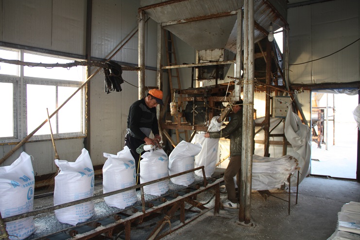 11月16日,我們?cè)谧咴L時(shí)看到,位于日曬制鹽新河制鹽分公司一班旁的筑包場(chǎng)地上到處一派繁忙的景象。一臺(tái)自卸卡車正將滿車的原鹽緩緩的倒入卸料口中,原鹽在經(jīng)過壓碎、灌裝、封包等工序后,再傳送帶的運(yùn)輸下,由兩名工人整齊的碼放在車廂內(nèi)。據(jù)現(xiàn)場(chǎng)工作人員介紹,該筑包場(chǎng)地近期所發(fā)送的原鹽除了去往金橋制鹽、連云港堿廠、大河氯堿等省內(nèi)企業(yè)外,還發(fā)往郯城等省外企業(yè),近期共捆包原鹽近5000噸。在宵洋物流公司五灌河碼頭上也是熱火朝天,車流涌動(dòng)。由于近期原鹽銷售工作的持續(xù)開展,自卸碼頭的原鹽裝卸工作也在有條不紊的進(jìn)行著,僅上周該碼頭就累計(jì)裝卸原鹽近2萬噸。(封楊)