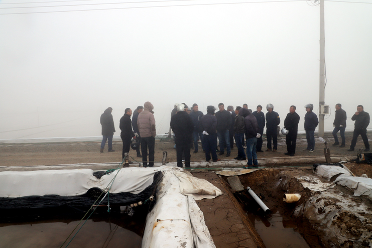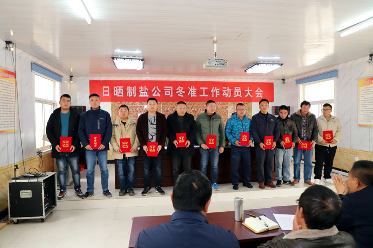 會前,與會人員一起現(xiàn)場參觀了埒南制鹽分公司9班的池道堰格,對硫酸鈣清理和土塘清淤工作作現(xiàn)場指導(dǎo)說明,隨后在生產(chǎn)服務(wù)公司會議室召開冬準(zhǔn)動員大會,會議對冬準(zhǔn)工作進行了全面部署,副總經(jīng)理古浩光對冬準(zhǔn)工作提出要求,副總經(jīng)理張學(xué)峰宣讀了表彰“秋扒”工作先進機組先進個人和安全質(zhì)量標(biāo)兵的決定,紀(jì)委書記、工會主席王宏宣讀了關(guān)于開展“大干冬準(zhǔn)勞動競賽”活動方案,新河、埒南制鹽分公司四名班組長就如何干好冬準(zhǔn)工作分別作表態(tài)發(fā)言。