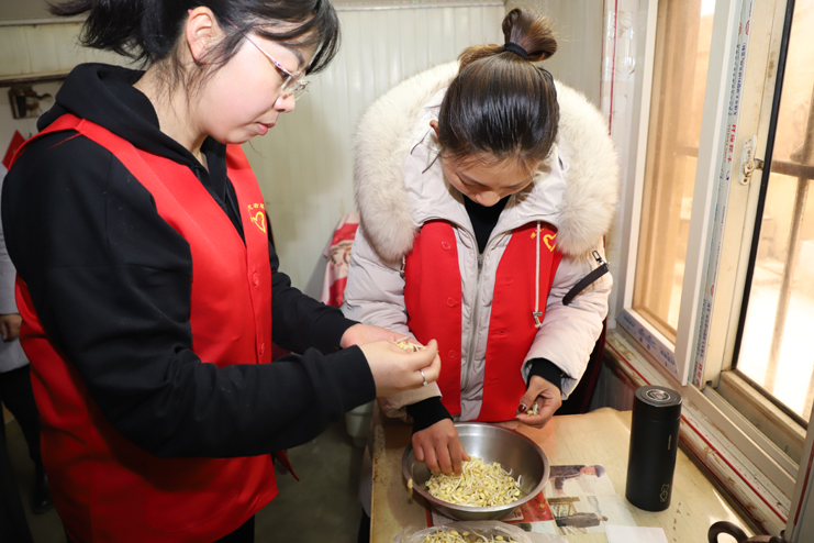 九點半,志愿者們來到中二圩社區(qū)新建點邱長松家,邱老跟老伴正在揀黃豆芽,準備中午的飯菜??吹街驹刚邆兊牡絹恚瑑晌焕先藷崆榈赜鲩T來,招呼我們進屋,我們來到房間里,映入眼簾的是一張老式的八仙桌擺在室內(nèi)的一角,整個房間里擺設很簡單,可以看出來老人的艱苦樸素、勤儉節(jié)約的生活作風。志愿者和老兩口拉起家常,詢問身體狀況和生活困難,并幫著大爺大媽揀黃豆芽。“我身體沒有什么大毛病,就是年歲大了,行動不方便,小孩都不在身邊,要感謝志愿者來看我們老兩口”,邱大爺誠懇的話語表達著心里的感謝。醫(yī)療志愿者為邱大爺跟老伴做了身體的簡單檢查,這時從外面走來幾位剛買完菜路過的大嬸、大媽們,她們聽說有醫(yī)療志愿者在邱大爺家,也紛紛過來讓志愿者醫(yī)療隊的醫(yī)生查查身體,“我家就住在隔壁,聽說有志愿者醫(yī)療隊來,我就想過來讓醫(yī)生幫我量量血壓,最近血壓或高或低的”,“剛在街上買菜回來,路過這,看都穿灌西志愿者紅馬甲,我就進來看看的,正好醫(yī)療隊在,我也給醫(yī)生查查看看。”大嬸、大媽們熱情的表達。