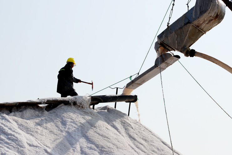 “轟隆隆——”的鹽泵轟鳴聲伴隨著扒鹽機(jī)馬達(dá)的嗡嗡聲,3月25日下午,日曬制鹽埒南制鹽分公司13班率先打響“春扒”戰(zhàn)役,萬畝鹽灘一片繁忙景象。