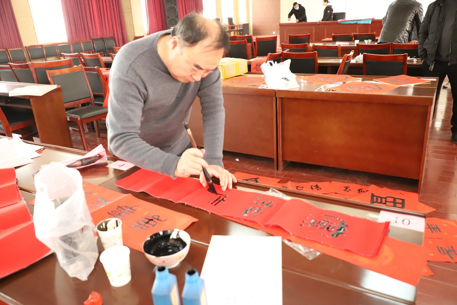 為弘揚(yáng)春節(jié)傳統(tǒng)文化,傳播清風(fēng)廉韻,讓“廉味”守住“年味”,守好“節(jié)點(diǎn)”過“廉節(jié)”,1月25日,灌西投資公司紀(jì)委在機(jī)關(guān)五樓開展“有嚴(yán)有味”迎新年書寫“廉”聯(lián)活動(dòng),邀請(qǐng)到縣書協(xié)書法名家現(xiàn)場(chǎng)揮毫潑墨,把年俗文化、清廉文化等文化資源進(jìn)行串聯(lián),為廣大黨員干部群眾送上了一道別具“廉味”和“年味”的新春文化盛宴。