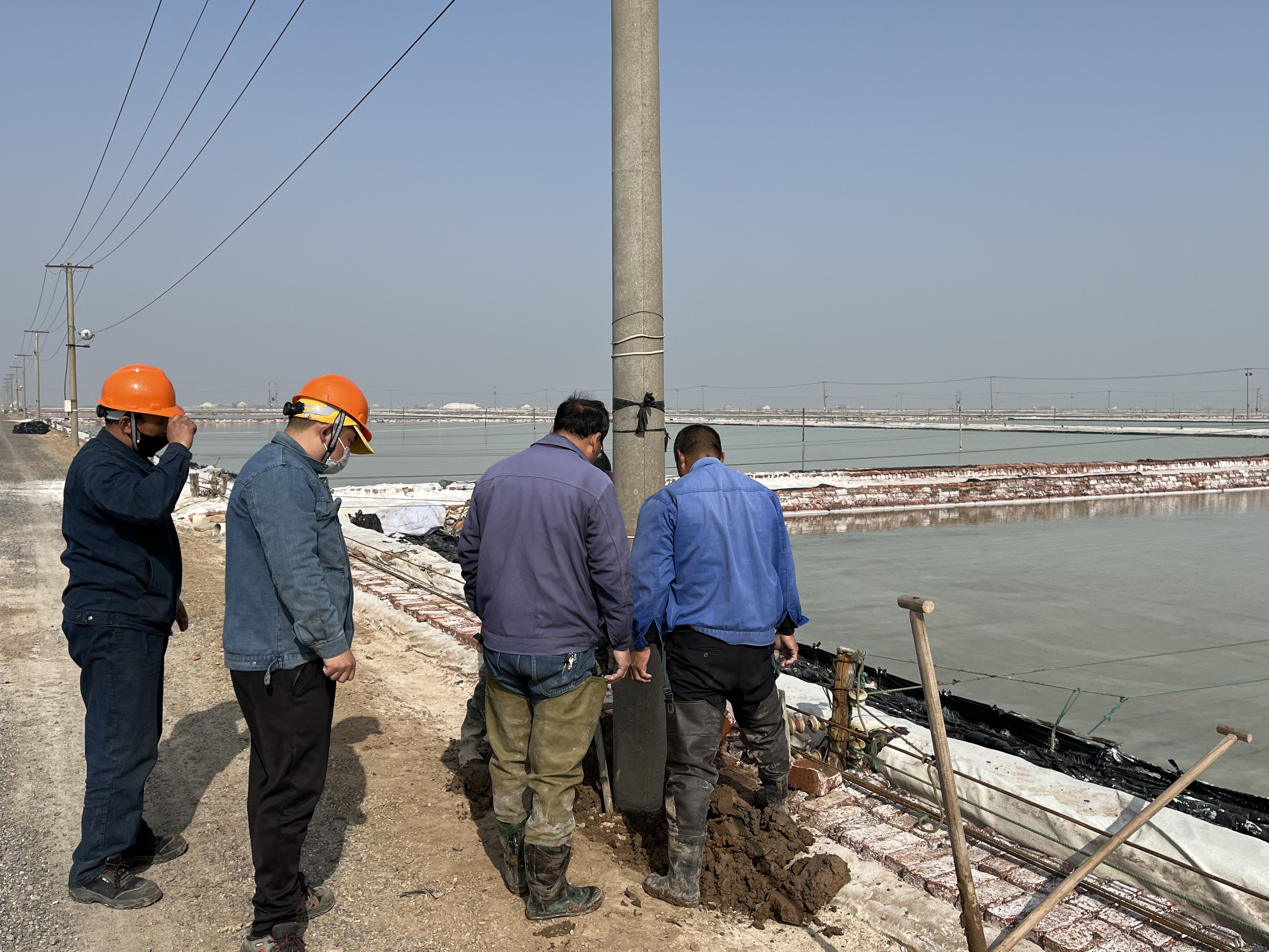 經(jīng)過(guò)多年的風(fēng)吹雨打,新河制鹽公司四班大池道邊上的電線杠出現(xiàn)大面積傾斜現(xiàn)象,嚴(yán)重影響安全生產(chǎn)。9日上午,公司安全負(fù)責(zé)人趙斯忠,組織部分后勤及班組人員一起為整改工作出點(diǎn)子,解決本次隱患整改的難點(diǎn)。