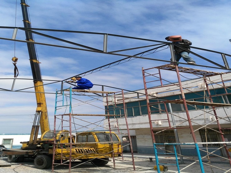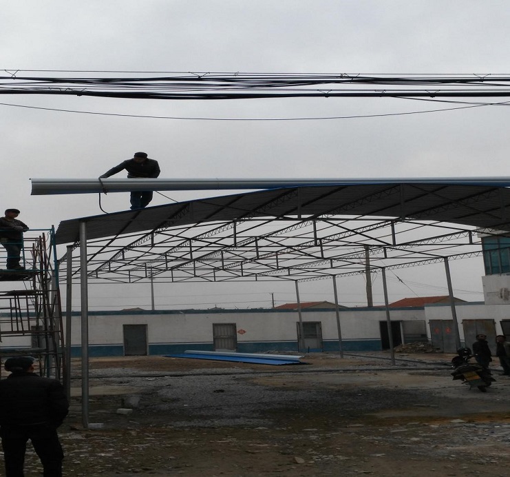 自4月初承接我場中二圩愛心市場大棚制作任務(wù)后,機(jī)電服務(wù)公司班子認(rèn)真進(jìn)行研究制作方案,購買優(yōu)質(zhì)材料,合理安排技術(shù)人員進(jìn)行制作,做到多頭并進(jìn),加班加點(diǎn),勞模王緒華、星級(jí)員工程洪連身先士卒,其他員工積極參與,到4月19日,全面、安全完成制作安裝任務(wù)。(圖為現(xiàn)場施工中)(胡亞東)