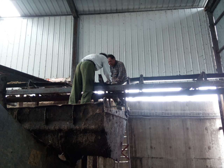 “叮……”,一陣急促的電話鈴聲驚醒了綠淮公司蔣玉柱。拿起手機,時間顯示13點05分,來電人是北歐農(nóng)莊外圍組組長常師傅。蔣玉柱迅速按鍵接聽電話。“豬糞原料的輸送帶損壞,如不及時搶修豬舍恐怕溢出,能否請你們協(xié)助維修”。常師傅著急的說道。此時的蔣玉柱睡意全無,他掛掉電話,像往常一樣,撥通了王超和王大從的電話。10分鐘后,3個人就聚集在辦公室,帶上工具、手套、鑰匙、配件,駕駛車輛向北歐農(nóng)莊出發(fā)。到現(xiàn)場查看后,發(fā)現(xiàn)是輸送帶錯位導致。幾個人商量了一下后,決定先停止輸送帶操作,由王大從開來裝載機,將維修人員“升”至高處,大家分工明確,各司其職,邊調(diào)整邊運行,經(jīng)過1小半時大汗淋漓奮戰(zhàn),下午3點多設(shè)備運行正常。此時,從田地剛回來的丹麥人布萊恩對著他們豎起了大拇指。(蘇北)