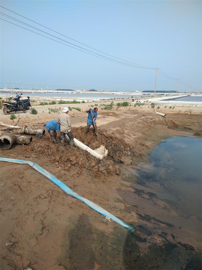 由于灘內(nèi)土塘老出籠銹蝕損壞,淤泥堵塞,不便于土塘水互相調(diào)用,原先班組主要是用機(jī)泵進(jìn)行調(diào)水,增加了費(fèi)用的支出,因此新河制鹽公司對(duì)16個(gè)班組的原有土塘節(jié)制全部更換成塑料彎頭,這種新型節(jié)制在使用中不易堵塞,封閉好,操作簡(jiǎn)便,工人們正在按照公司的要求搶時(shí)間把彎頭裝好。(新河制鹽趙斯中)