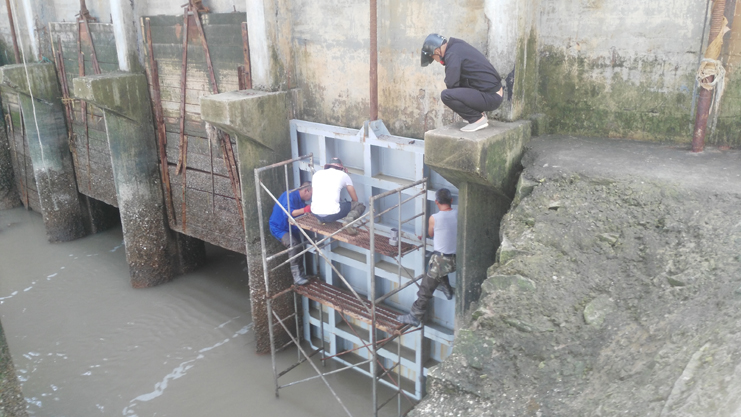 為確保機電設(shè)備運行正常,按時供好水,服務(wù)好海水養(yǎng)殖業(yè)。連日來,機電服務(wù)公司認真組織好修理人員,對六圩閘站機電設(shè)備進行修理維護。在市勞模、機修組長王緒華的帶領(lǐng)下,所有參加人員不怕臟和累,趕潮水,對水泵、閘門、啟閉機等進行維修作業(yè)。該組有6名修理人員,其中有3名是黨員,1名黨積子,他們能身先士卒,發(fā)揮了黨員先鋒作用,二星級員工程洪連能吃苦在前,臟了3套工作服,都沒有心疼。經(jīng)過近2周時間維護修理,共修理155KW水泵2臺、啟閉機1臺,拆除木閘門、安裝鋼閘門各1塊、更新草擋2片。為正常開機揚水提供了保障。(機電服務(wù)公司)