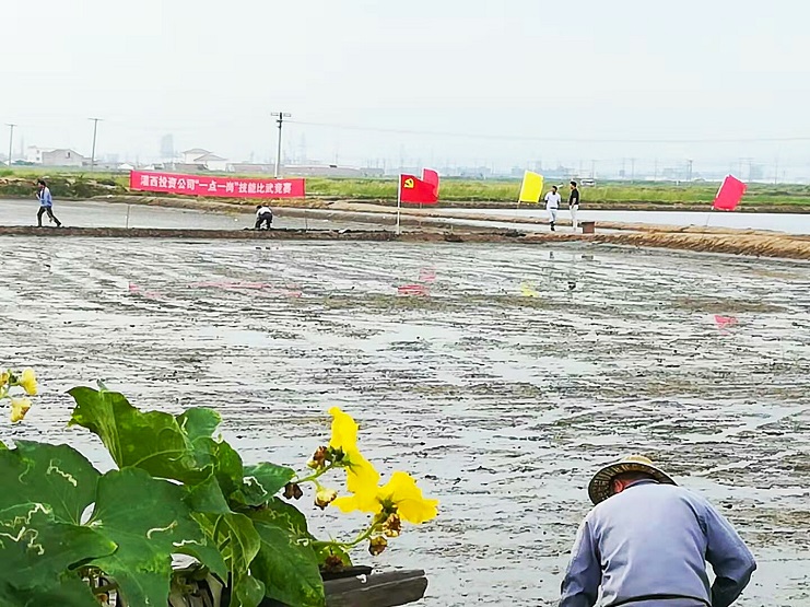 9月6日早,灘上彩旗飄揚,灌西投資公司黨委“一點一崗”技能大比武——撩溝做堰在我公司3班隆重舉行,23名選手進行撩溝做堰比賽。 比賽要求撩溝做堰20米,規(guī)定時間內競賽人員要求溝堰整齊上線,溝內清淤干凈,池堰平整光滑。首先掛單線,其次撈於進行人工踩壓、和熟、做實,嚴格修灘標準化,經(jīng)過一系列的角逐比賽,達到溝底、坡面、埝頂三面見光,條條上線,灘容灘貌煥然一新,最后評委按質量好、速度快進行評比,評出了一、二、三等獎。(實業(yè)公司 江德前)